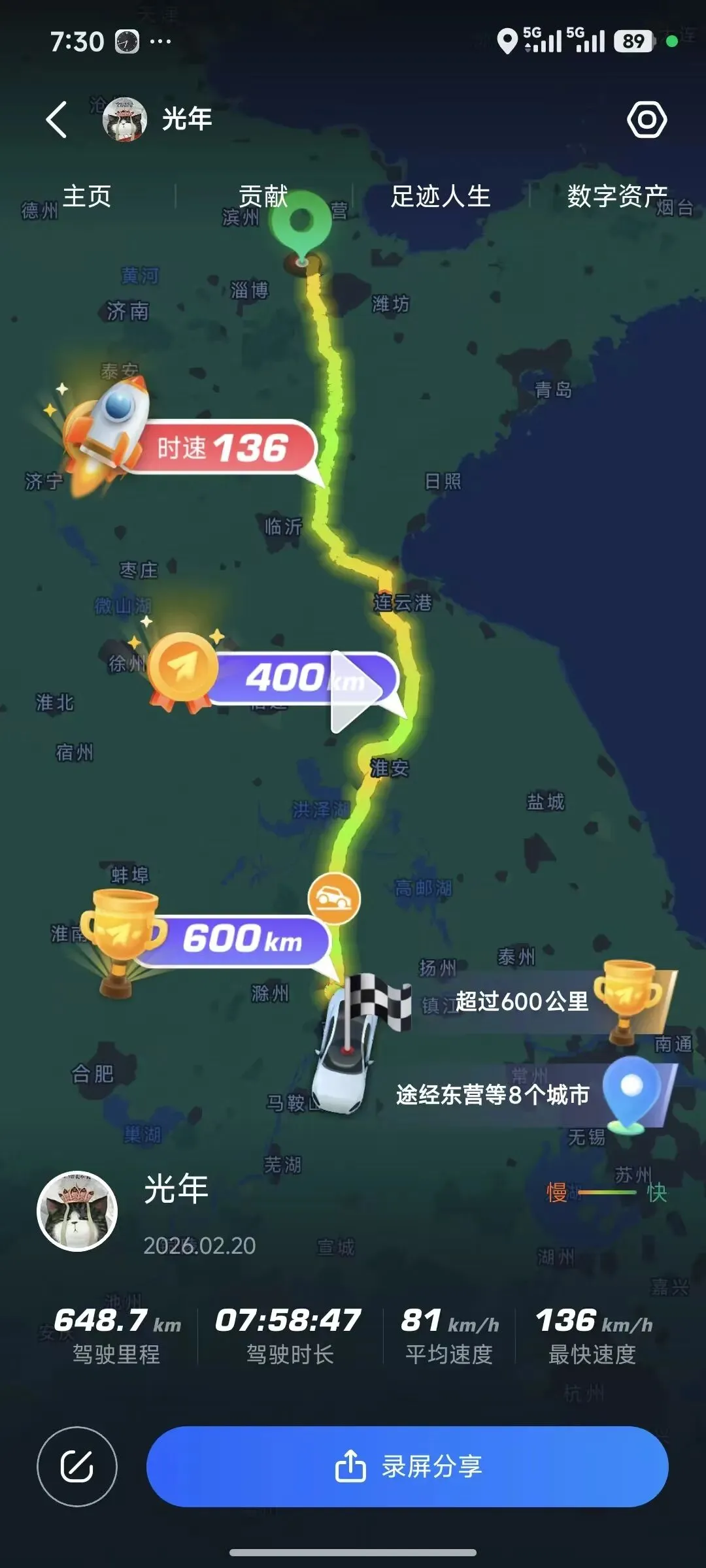 途中停了两个服务区活动休息,吃了两张饼,一个烤肠。凌晨五点,在第二个服务区,确实困了,又在车里睡了一个多小时。最终耗时八小时抵达南京,实际纯驾驶时间约六个半小时。
