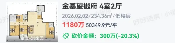 南部新城的金基望樾府,最新成交1套建面约234.36㎡房源,成交总价1180万,成交单价约50349.9元/㎡,直接刷新板块二手房成交价天花板。