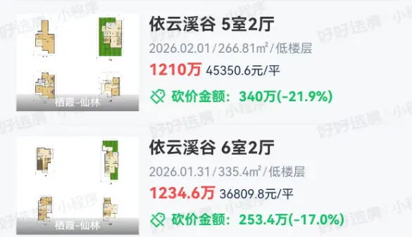 仙林的依云溪谷,刚刚成交2套墅居大宅,建面约266.81㎡、335.4㎡,总价分别达到了1210万、1234.6万。