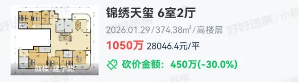 鼓楼滨江的锦绣天玺,刚刚成交1套建面约374.38㎡6室2厅大平层,总价1050万。