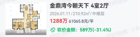 鼓楼华侨路的金鼎湾今朝天下,刚刚成交1套建面约210.92㎡房源,成交总价1288万,单价高达6.1万/㎡。