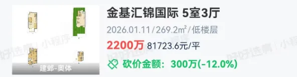 河西绿博园的金基汇锦国际,刚刚成交1套建面约269.2㎡墅居大宅,总价2200万,成交单价高达8.1万/㎡,创小区历史最高。