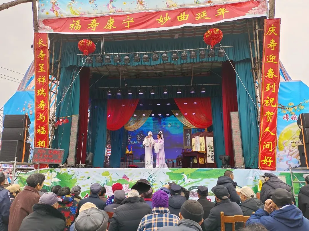 演出伊始,婉转的唱腔、精美的扮相、细腻的表演便吸引了四邻八村的戏迷群众纷至沓来,大家或围坐前排凝神观看,或驻足台侧细细品味,演员们惟妙惟肖的演绎引得现场掌声连连。观众们纷纷拿出手机拍摄记录精彩片段,小小戏台之上,古韵唱腔婉转悠扬;戏台之下,群众脸上洋溢着幸福笑容,整场演出氛围热烈浓厚,让大家沉浸式感受传统戏曲的独特魅力。