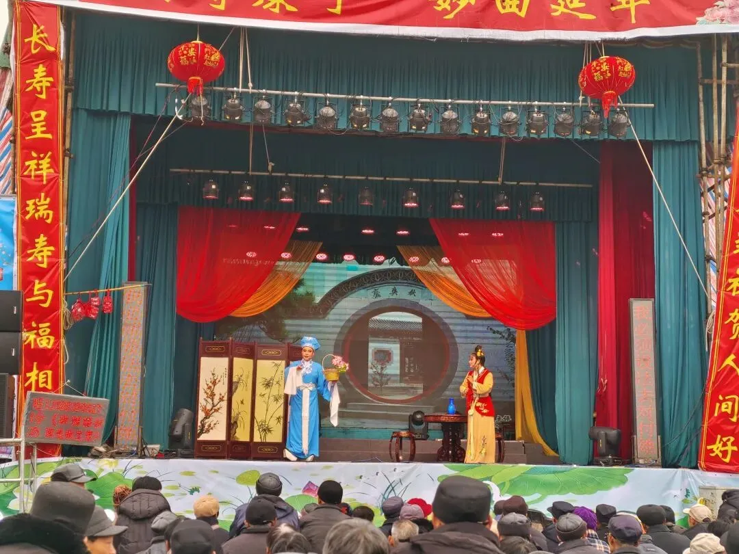 为传承弘扬中华优秀传统戏曲文化,丰富群众新春精神文化生活,秀山村陈家墩自然村特意邀请杭州青年越剧团进村演出,将戏台搭在村民家门口,把文化大餐送到群众心坎上。