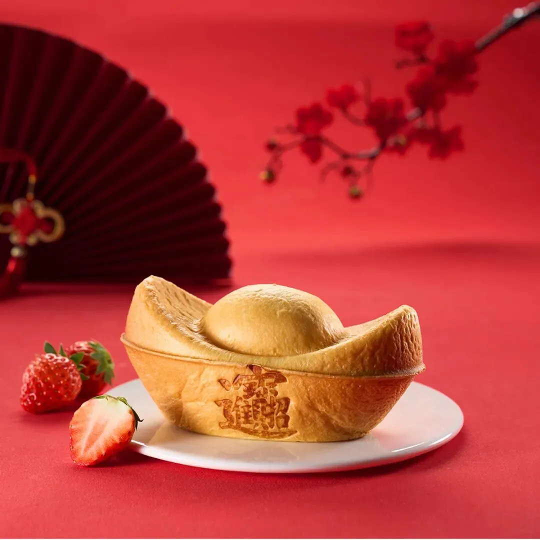 商家更是不会错过这个恭喜发财的机会。外国人说“顾客就是……”,在中国就应该说“顾客就是财神爷”,这好像更容易接受。所以,在这个喜气的日子,某超市就推出一款“招财进宝元宝大面包”。
