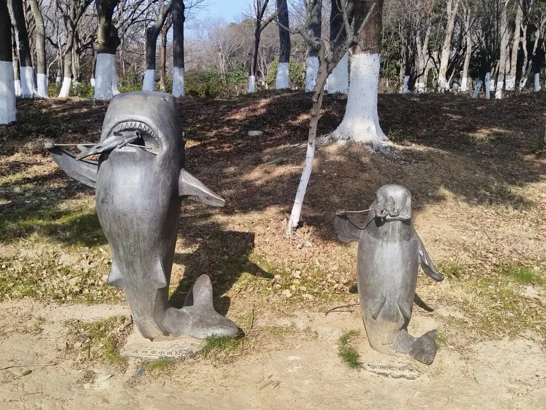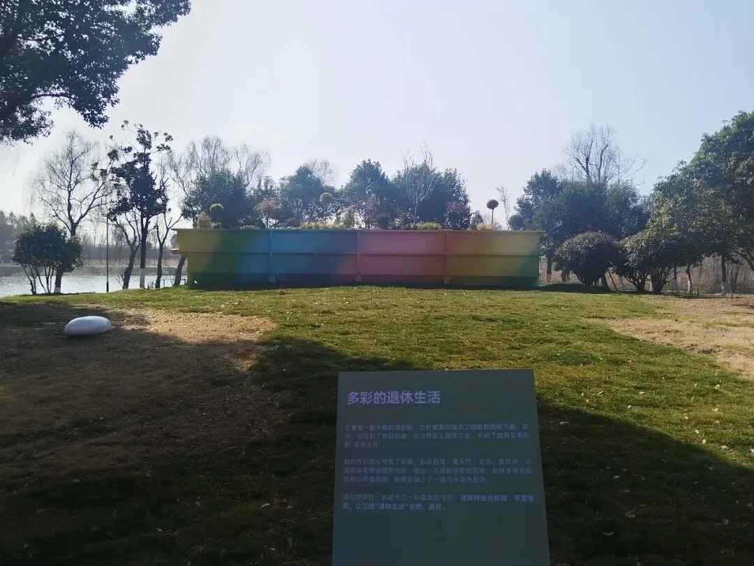 就是这个公园基本保留了原来的野样子——秦淮河水还是那些水,芦苇还是那些芦苇,600岁的明代古桥还在,只是铺了木栈道方便人走,搭了观鸟亭、添了几座雕塑,摆了长椅让人歇脚。这才是城市里该有的湿地模样,满满的生机和野趣。