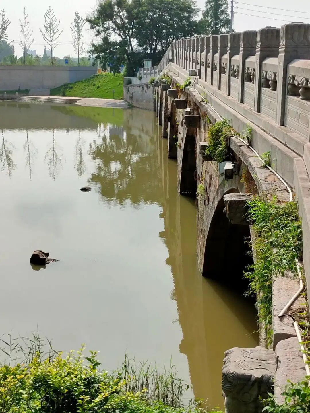 桥墩分水尖上有6只趴蝮,就是分水兽,兽头向桥身外突出约3米。它们的作用是“水位预警”——如果洪水淹没了分水兽,船家就要小心了;如果水位仍在分水兽以下,说明可以安全通过。