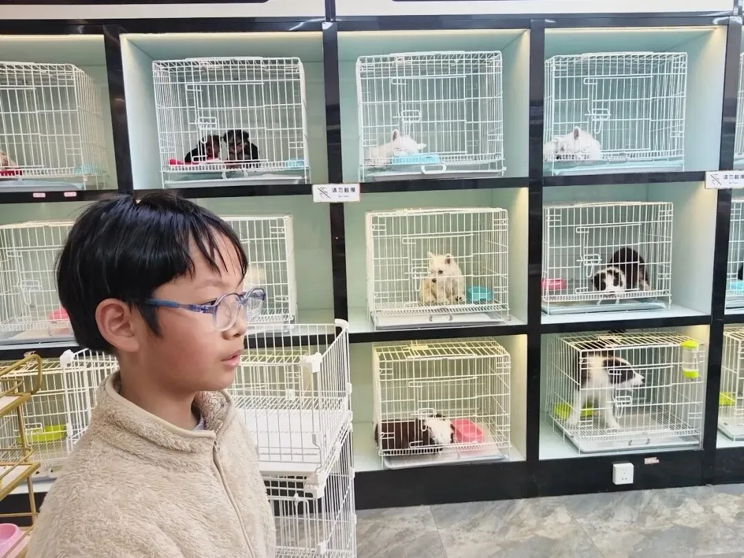 汪汪叫的小狗摇着尾巴在笼边打转,喵喵的小猫慵懒地舔着爪子,五彩鹦鹉扑棱着翅膀扑腾学舌,还有游来游去的小鱼、层层叠叠的花卉绿植——满眼都是蓬勃的生机。