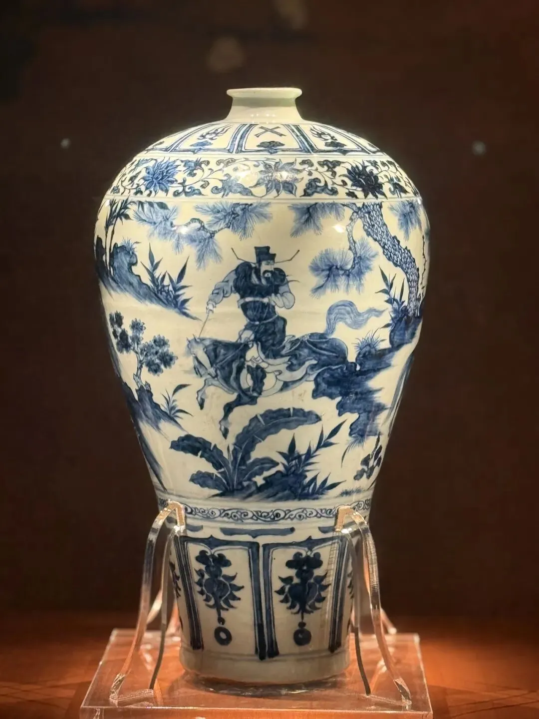 镇馆之宝“萧何月下追韩信”青花梅瓶上,