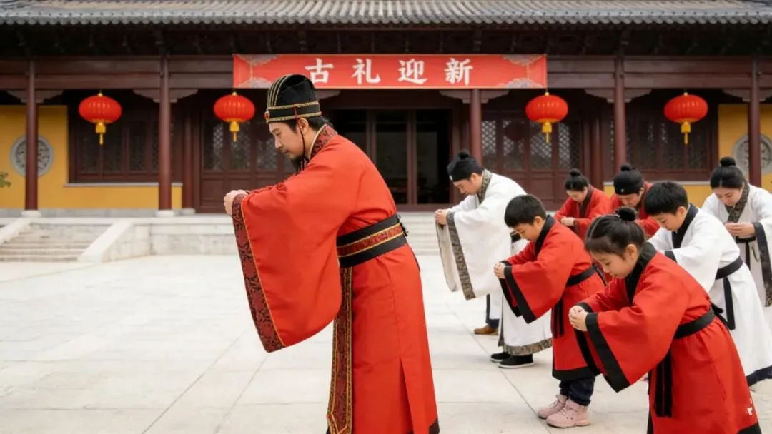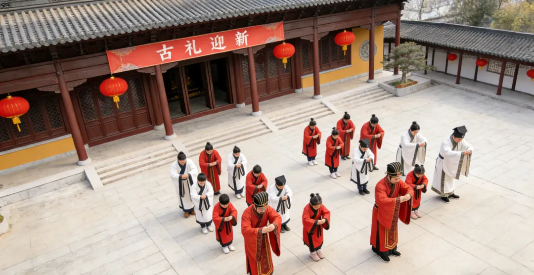 学汉唐揖礼,诵吉祥古语。