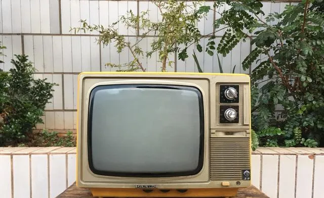 图中这台灰屏金黄壳子的家伙叫熊猫牌电视机,714厂做的老功臣,旋钮两枚凸在右侧,换台嗒嗒作响,下面小喇叭带着一股沙沙的气音,家里第一次看春晚就是它顶在八仙桌上,妈说别挨太近伤眼,爸拿筷子头轻轻敲一下机壳,雪花就乖了点,以前一家人等新闻联播开场鼓点坐定,现在手机一点全出来了,老熊猫却越发显得沉稳。
