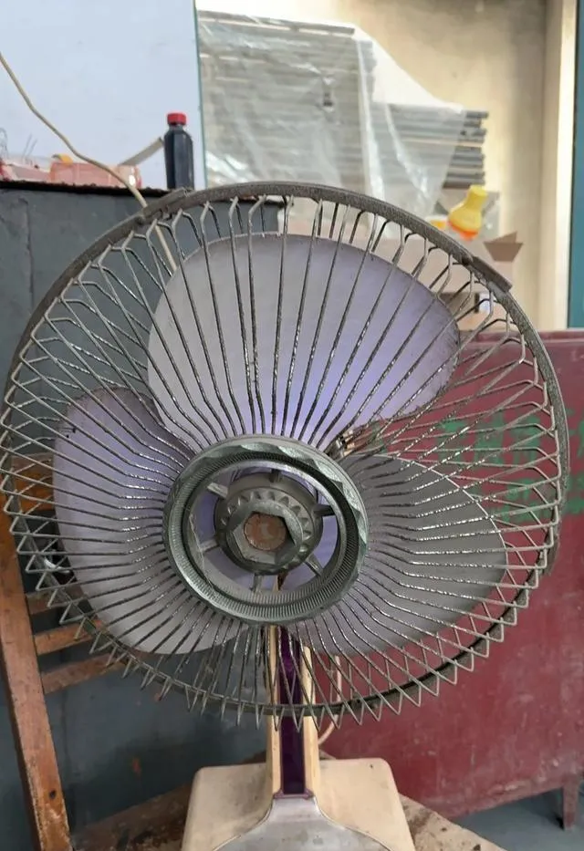 这个全金属扇叶的叫蝙蝠牌电风扇,护网密密匝匝,底座沉得很,掰一掰脖子角度就能卡住,风一开是实打实的硬风,桌上文件能吹得抖三抖,奶奶说新街口橱窗里有一台一年不关机,还照样转得稳,她拿抹布擦护网,手背蹭一下都是凉意,后来塑料扇叶轻是轻,那股扎实劲儿没了。