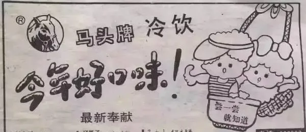 这个旧报上的画儿说的是马头牌冰棒,广告词一冒头就要人买两根,最招人的是白玉茶和大赤豆,夏天午后,小贩车铃在胡同口一摇,我们攥着汗津津的四分钱追出去,咬一口牙都打个战,妈在后头喊别跑太猛,一会儿肚子要疼,现在冷饮柜里品类多得眼花,马头的清爽反而记得更清。