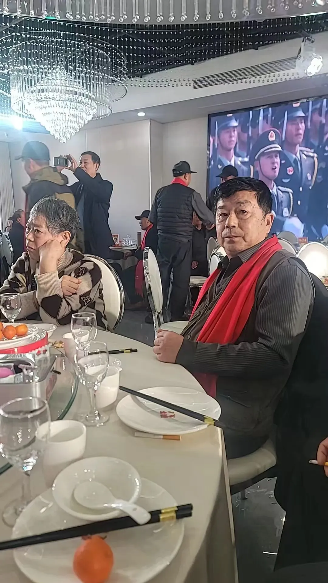 席间播放解放军进行曲,所有的人都轻轻地唱,片刻间就再不犹豫不再生疏,像擦亮一把很久没吹的军号,很快就汇成一片低沉而有力的激流,在酒杯灯光里缓缓流淌。这不是表演,也不只是怀旧,它是一种确认!确认有些东西从来没有丢。歌声里我望向窗外,盱眙的天空,安安静静,没有诗词里的凄凉。对我们这些在外奔波多年的人来说,古人笔下的孤单,是一个人的背影;而我们这群老兵的相聚,是在一群人的体温里,找到了抵挡所有寒冷的依靠。分开不是永远,只是一段长长的等待,就为了今天这场痛快的重逢。