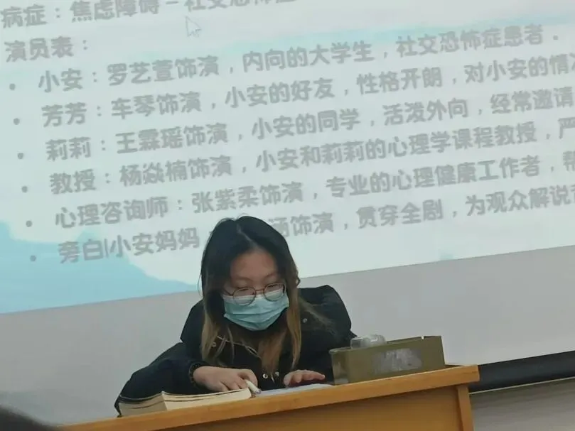 对于什么真正启发了她对于心理学的热爱,罗艺萱同学的回答是一次课堂实践的情景剧演出。“社交恐怖症”是变态心理学中的一个定义。在剧中,她扮演了一名患有社交恐怖症的大学生,在同学扮演的心理咨询师的帮助下纠正认知偏差,走出心理疾病。