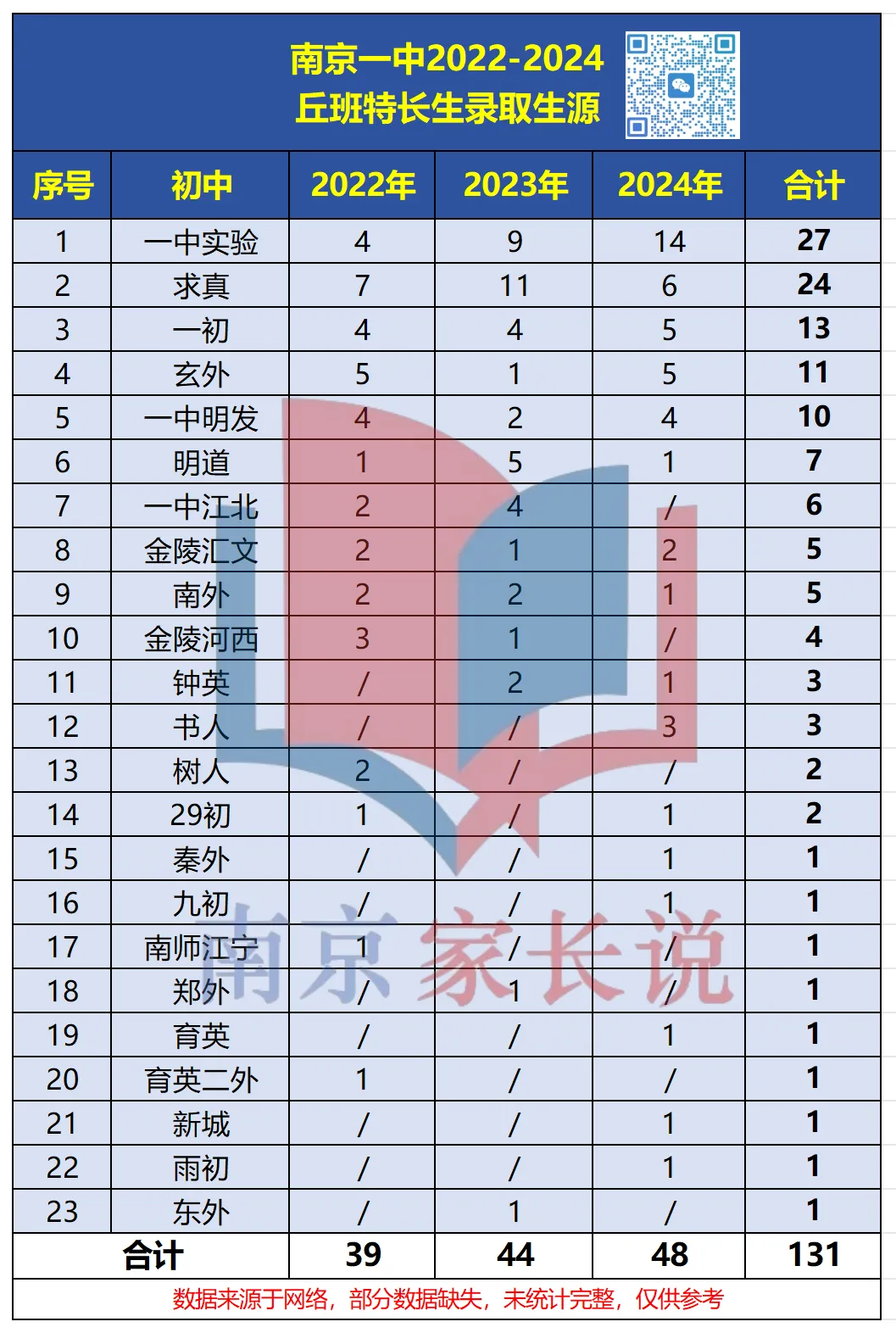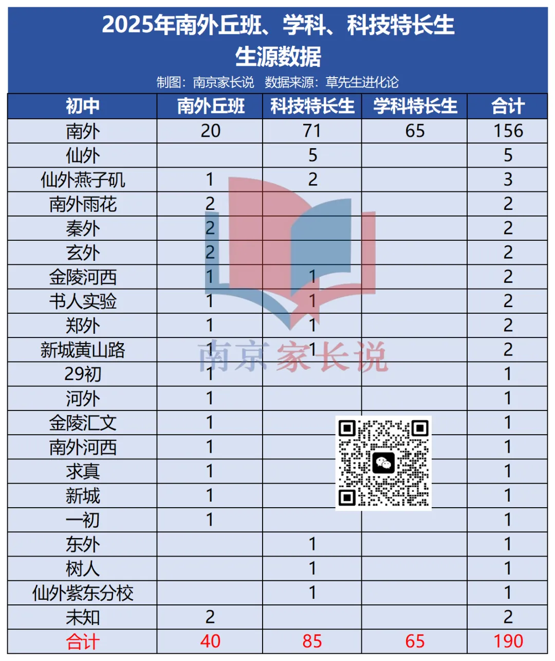 小编还统计了2025年南外丘班生源、2022-2024年南京一中丘班的录取生源,由于部分数据缺失,仅供参考。
