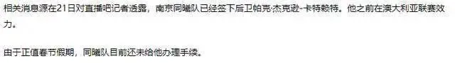 南京同曦在裁掉小外援拉维特之后,一直在寻找合适小外援。据国内媒体最新报道,南京同曦已经签下后卫帕克-杰克逊-卡特赖特,由于正值春节假期,同曦队目前还未给他办理手续。第一阶段,南京同曦的战绩并不理想,仅仅取得8胜15负的成绩,在只有郭昊文和汉兹两位超级后场率队的情况下,南京同曦并没有打出预期的竞争力。卡特赖特是一名全能型小外援,拥有极强的组织串联能力,曾是NBL联赛的顶级控卫,此番加盟南京同曦之后,有望进一步提升球队综合实力。