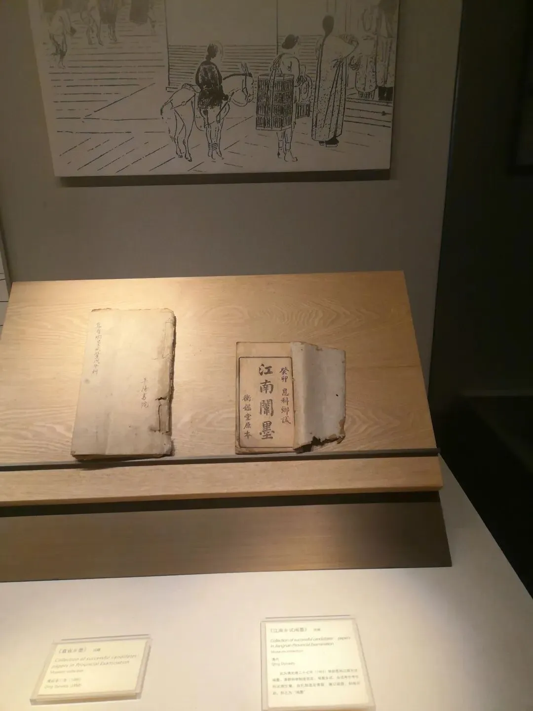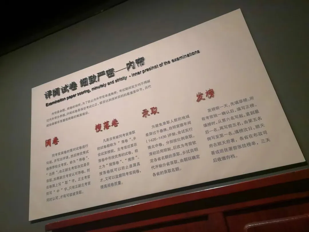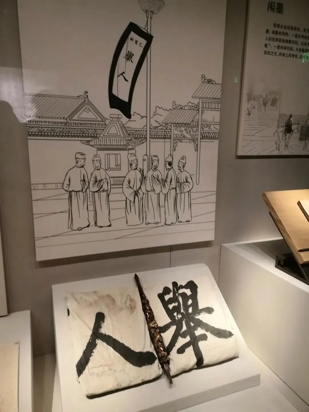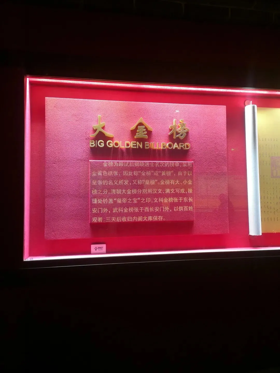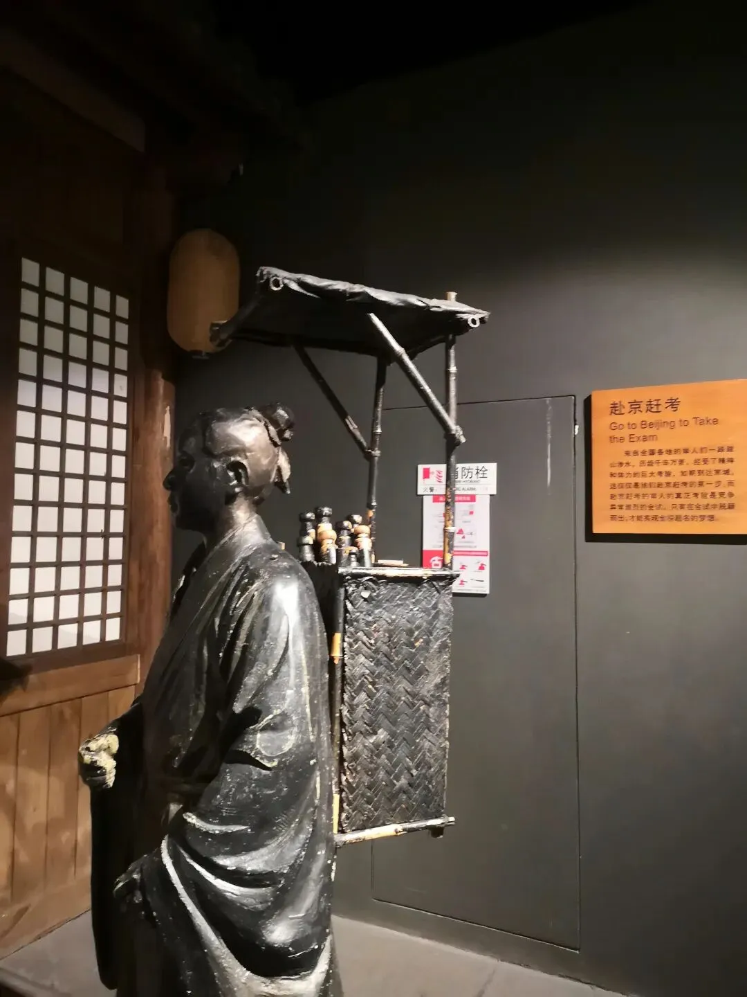 “鱼龙变化”展厅是中国科举博物馆的核心展区,位于负四层。该展厅通过精美的文物和生动的场景,展现了考生通过科举实现身份巨变、宛如“鲤鱼跳龙门”的过程。有著名的明代“鱼化龙”石雕:高约70厘米的青石雕刻,呈龙头鱼身形象,造型古朴生动。顶端有一圆孔,古时家中有新生儿会在此烧“龙头香”,取“望子成龙”之意,兼具科举寓意与民俗趣味;还有清康熙青花鱼龙变化图盘:盘心以青花绘汹涌波涛,其间有龙与大小三鱼翻泳。通过“鱼跃成龙”的画面,象征飞黄腾达、金榜题名,是康熙朝瓷器中的精品。还有一件清代的寿山石雕鱼化龙纹笔筒:寿山石质地温润,正面雕刻鱼化龙纹饰。作为文房用具,置于案头以激励读书人奋发向学,是清代雕刻工艺与科举文化结合的体现。