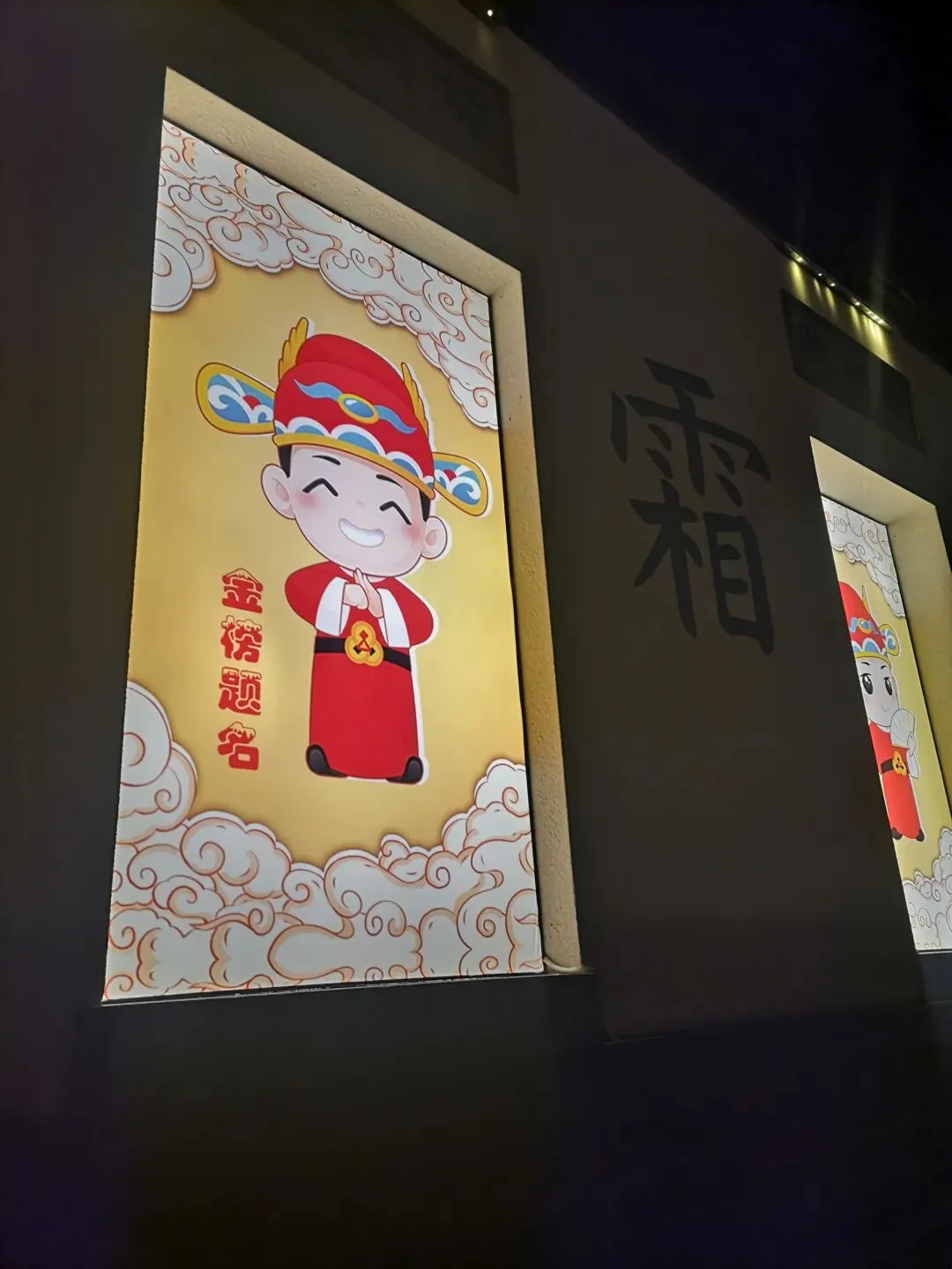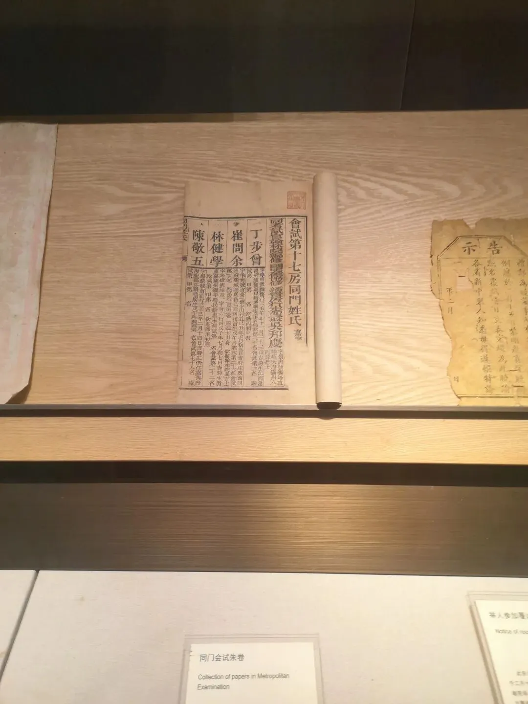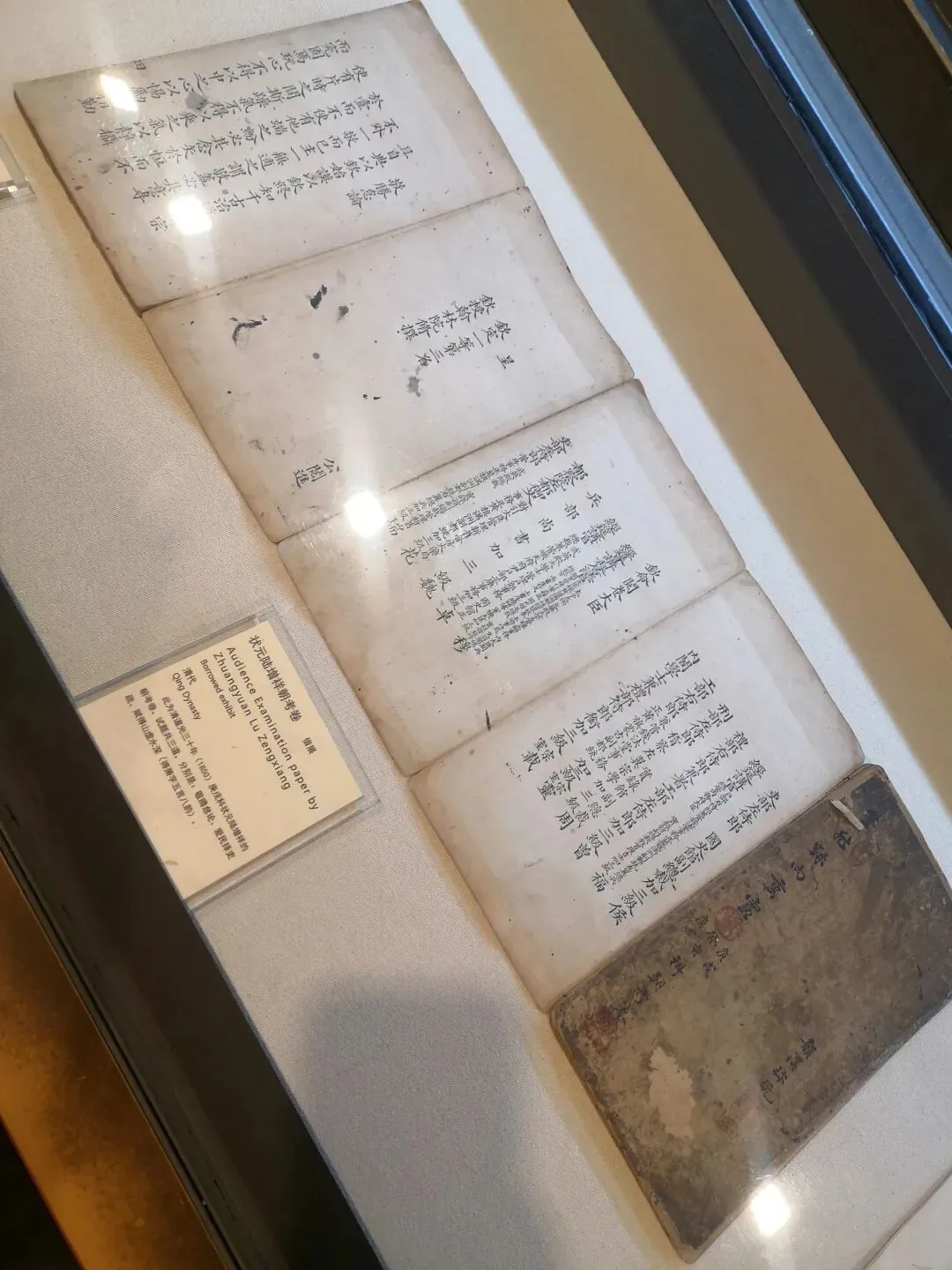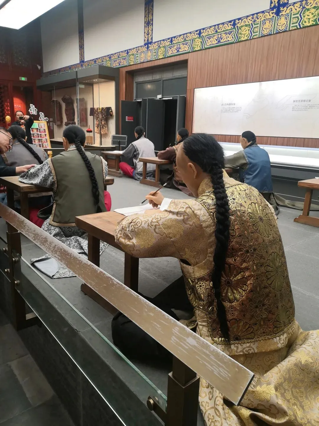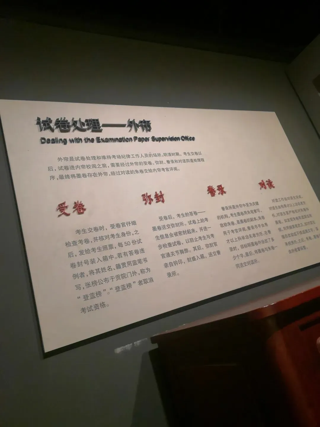 “鱼龙变化”展厅是中国科举博物馆的核心展区,位于负四层。该展厅通过精美的文物和生动的场景,展现了考生通过科举实现身份巨变、宛如“鲤鱼跳龙门”的过程。有著名的明代“鱼化龙”石雕:高约70厘米的青石雕刻,呈龙头鱼身形象,造型古朴生动。顶端有一圆孔,古时家中有新生儿会在此烧“龙头香”,取“望子成龙”之意,兼具科举寓意与民俗趣味;还有清康熙青花鱼龙变化图盘:盘心以青花绘汹涌波涛,其间有龙与大小三鱼翻泳。通过“鱼跃成龙”的画面,象征飞黄腾达、金榜题名,是康熙朝瓷器中的精品。还有一件清代的寿山石雕鱼化龙纹笔筒:寿山石质地温润,正面雕刻鱼化龙纹饰。作为文房用具,置于案头以激励读书人奋发向学,是清代雕刻工艺与科举文化结合的体现。
