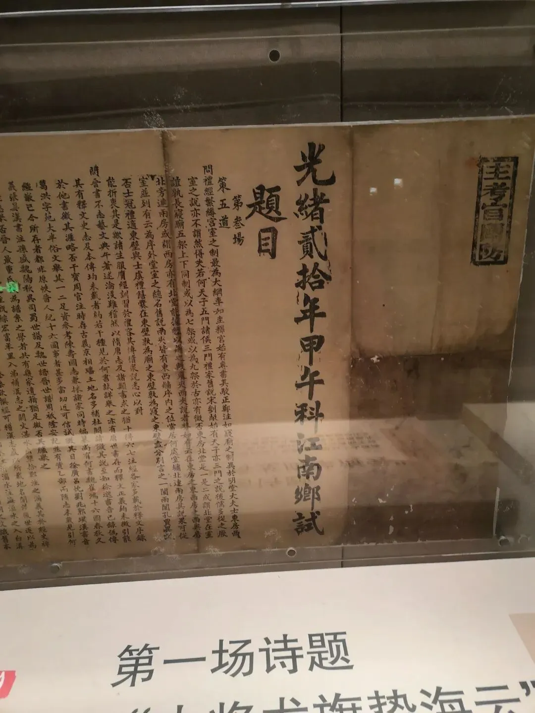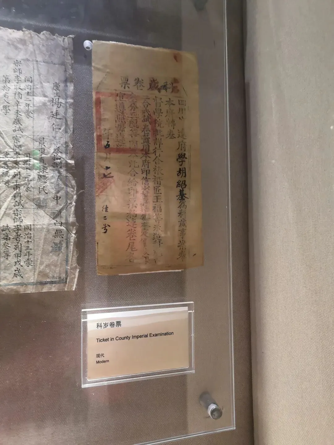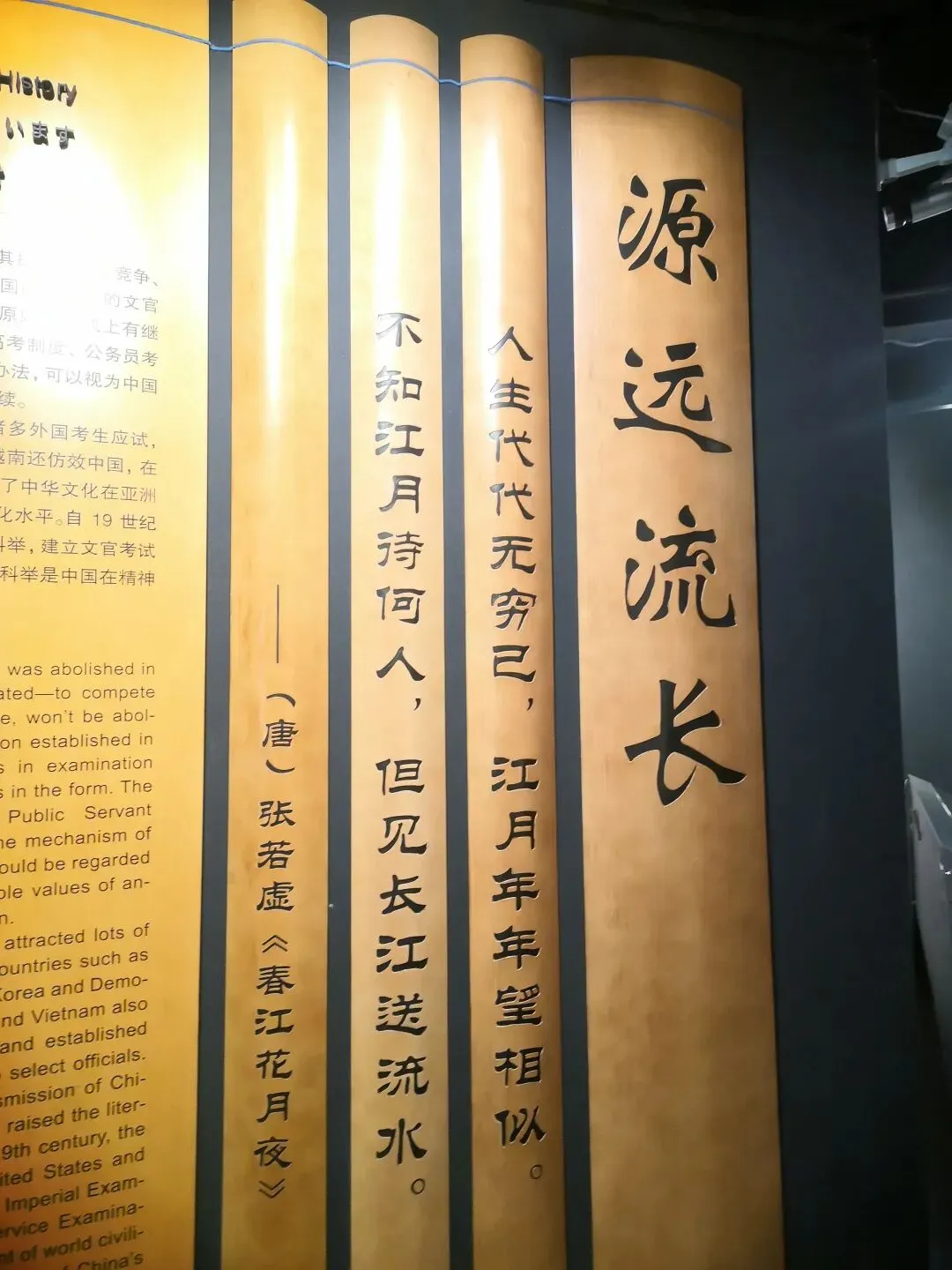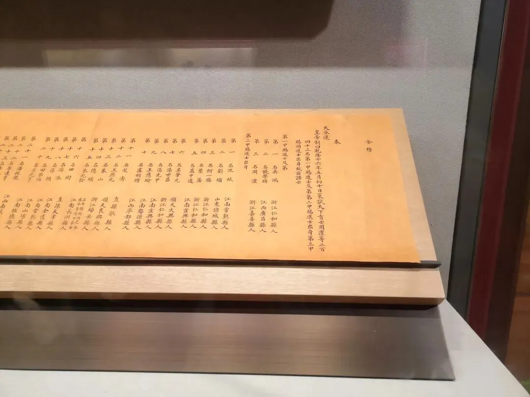 “鱼龙变化”展厅是中国科举博物馆的核心展区,位于负四层。该展厅通过精美的文物和生动的场景,展现了考生通过科举实现身份巨变、宛如“鲤鱼跳龙门”的过程。有著名的明代“鱼化龙”石雕:高约70厘米的青石雕刻,呈龙头鱼身形象,造型古朴生动。顶端有一圆孔,古时家中有新生儿会在此烧“龙头香”,取“望子成龙”之意,兼具科举寓意与民俗趣味;还有清康熙青花鱼龙变化图盘:盘心以青花绘汹涌波涛,其间有龙与大小三鱼翻泳。通过“鱼跃成龙”的画面,象征飞黄腾达、金榜题名,是康熙朝瓷器中的精品。还有一件清代的寿山石雕鱼化龙纹笔筒:寿山石质地温润,正面雕刻鱼化龙纹饰。作为文房用具,置于案头以激励读书人奋发向学,是清代雕刻工艺与科举文化结合的体现。