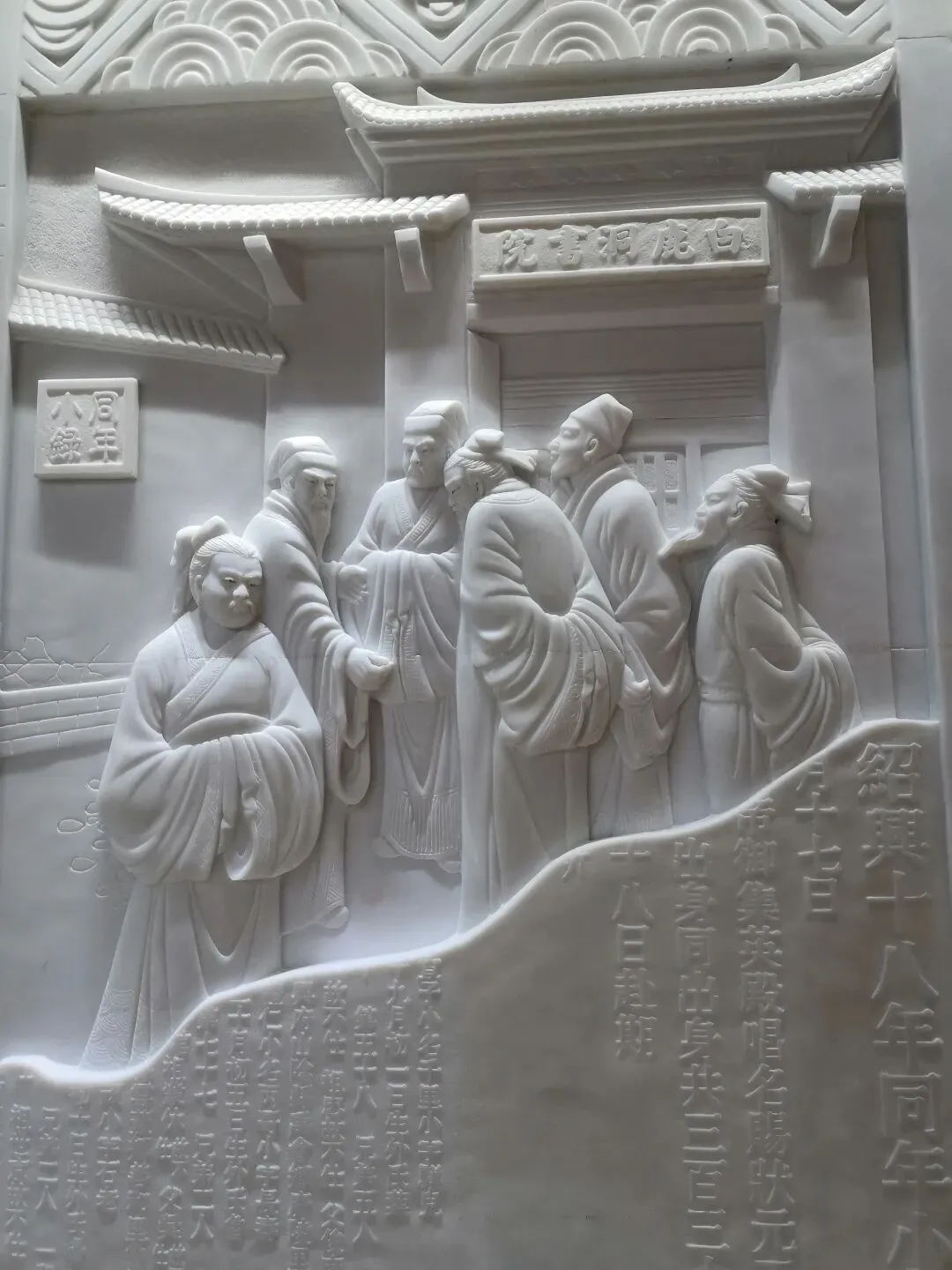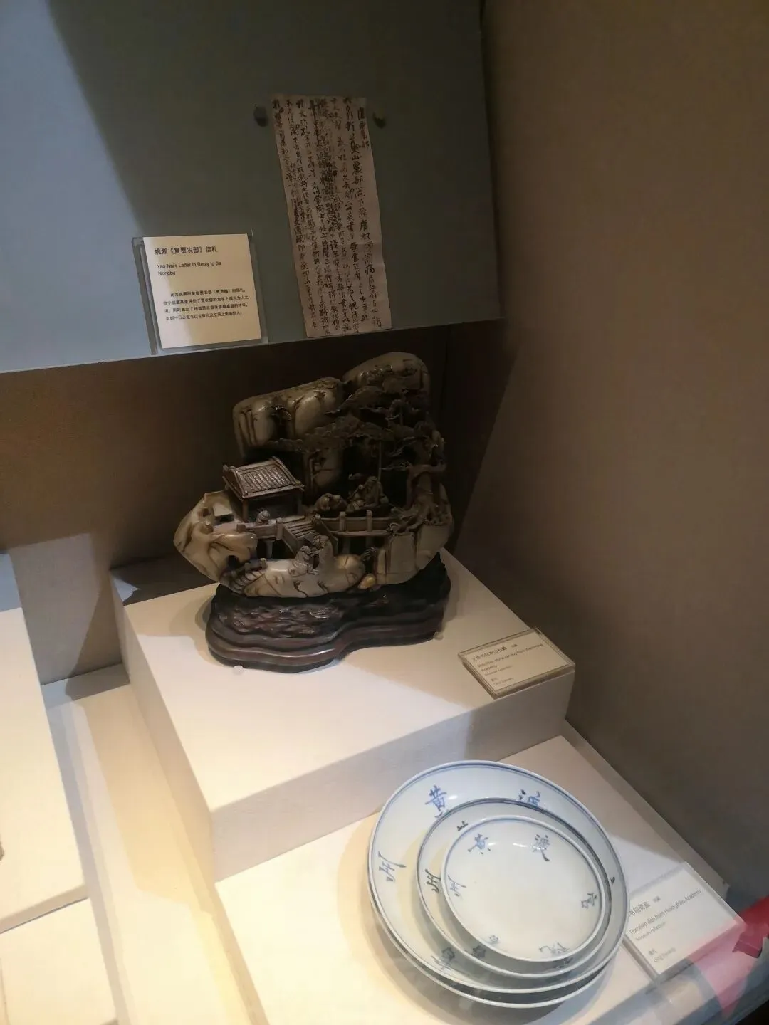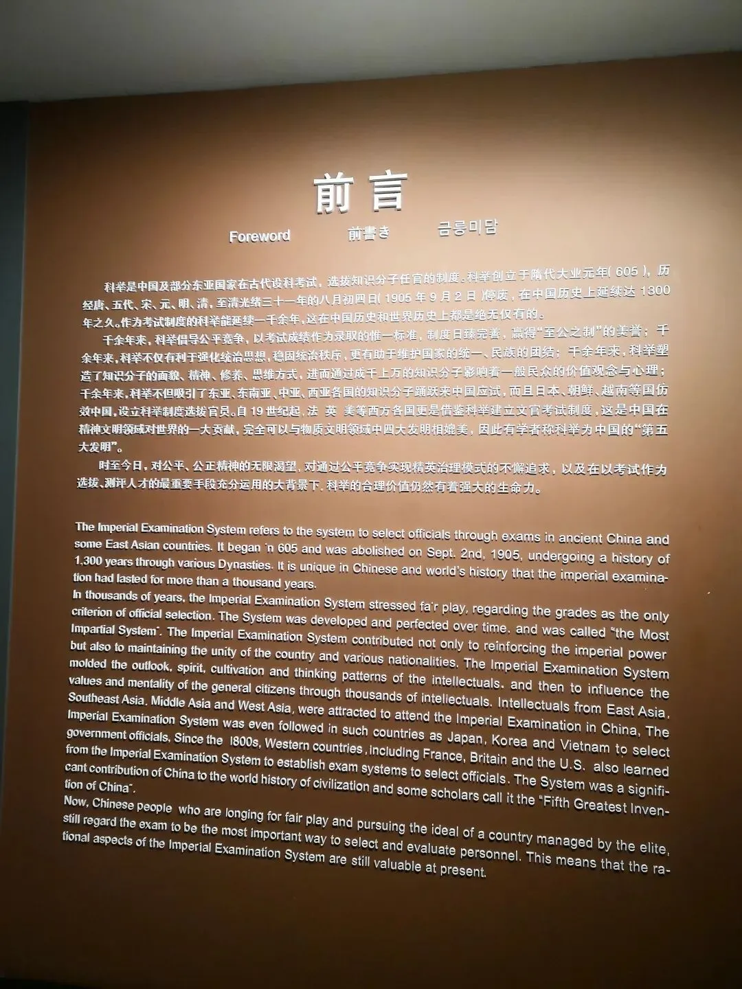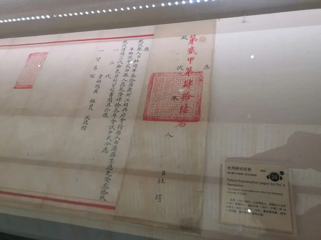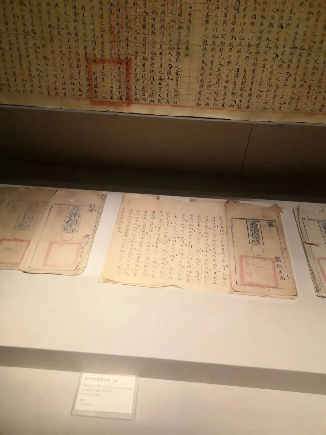 “鱼龙变化”展厅是中国科举博物馆的核心展区,位于负四层。该展厅通过精美的文物和生动的场景,展现了考生通过科举实现身份巨变、宛如“鲤鱼跳龙门”的过程。有著名的明代“鱼化龙”石雕:高约70厘米的青石雕刻,呈龙头鱼身形象,造型古朴生动。顶端有一圆孔,古时家中有新生儿会在此烧“龙头香”,取“望子成龙”之意,兼具科举寓意与民俗趣味;还有清康熙青花鱼龙变化图盘:盘心以青花绘汹涌波涛,其间有龙与大小三鱼翻泳。通过“鱼跃成龙”的画面,象征飞黄腾达、金榜题名,是康熙朝瓷器中的精品。还有一件清代的寿山石雕鱼化龙纹笔筒:寿山石质地温润,正面雕刻鱼化龙纹饰。作为文房用具,置于案头以激励读书人奋发向学,是清代雕刻工艺与科举文化结合的体现。