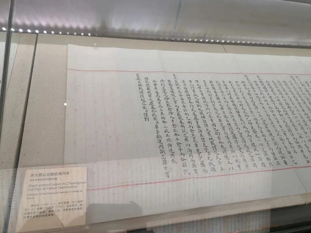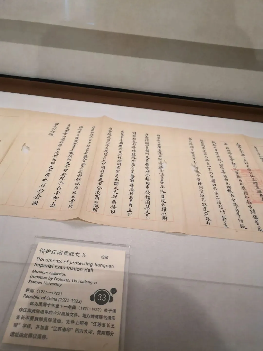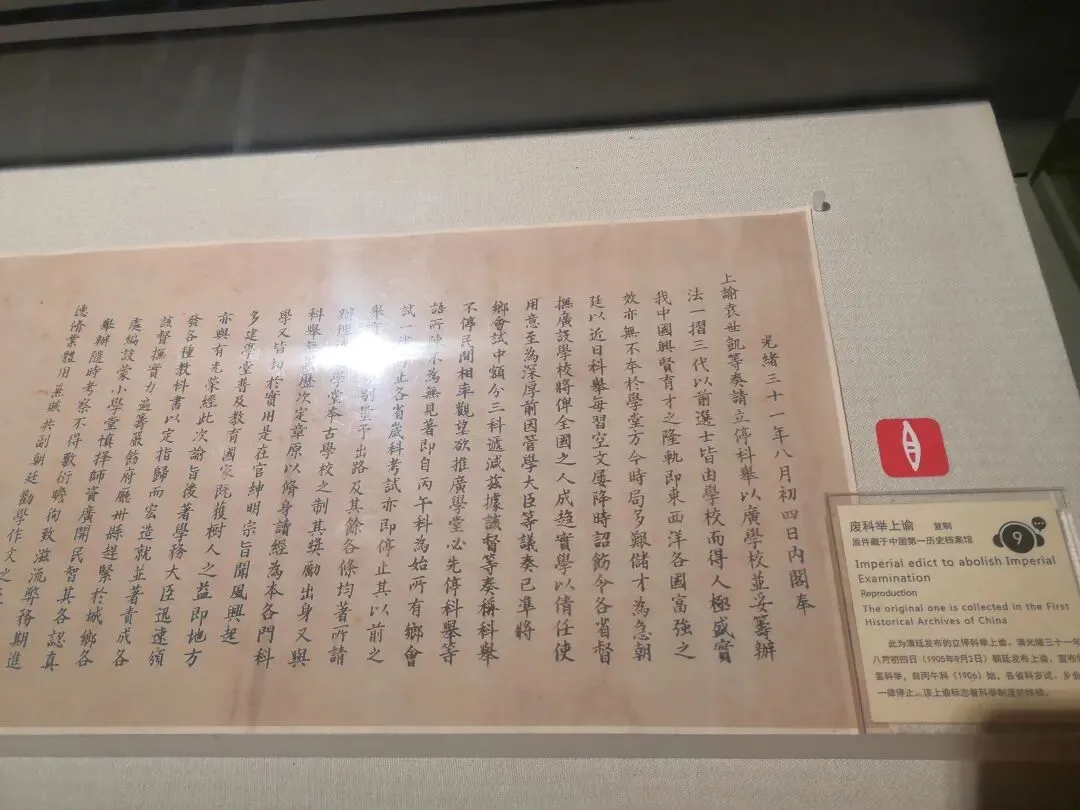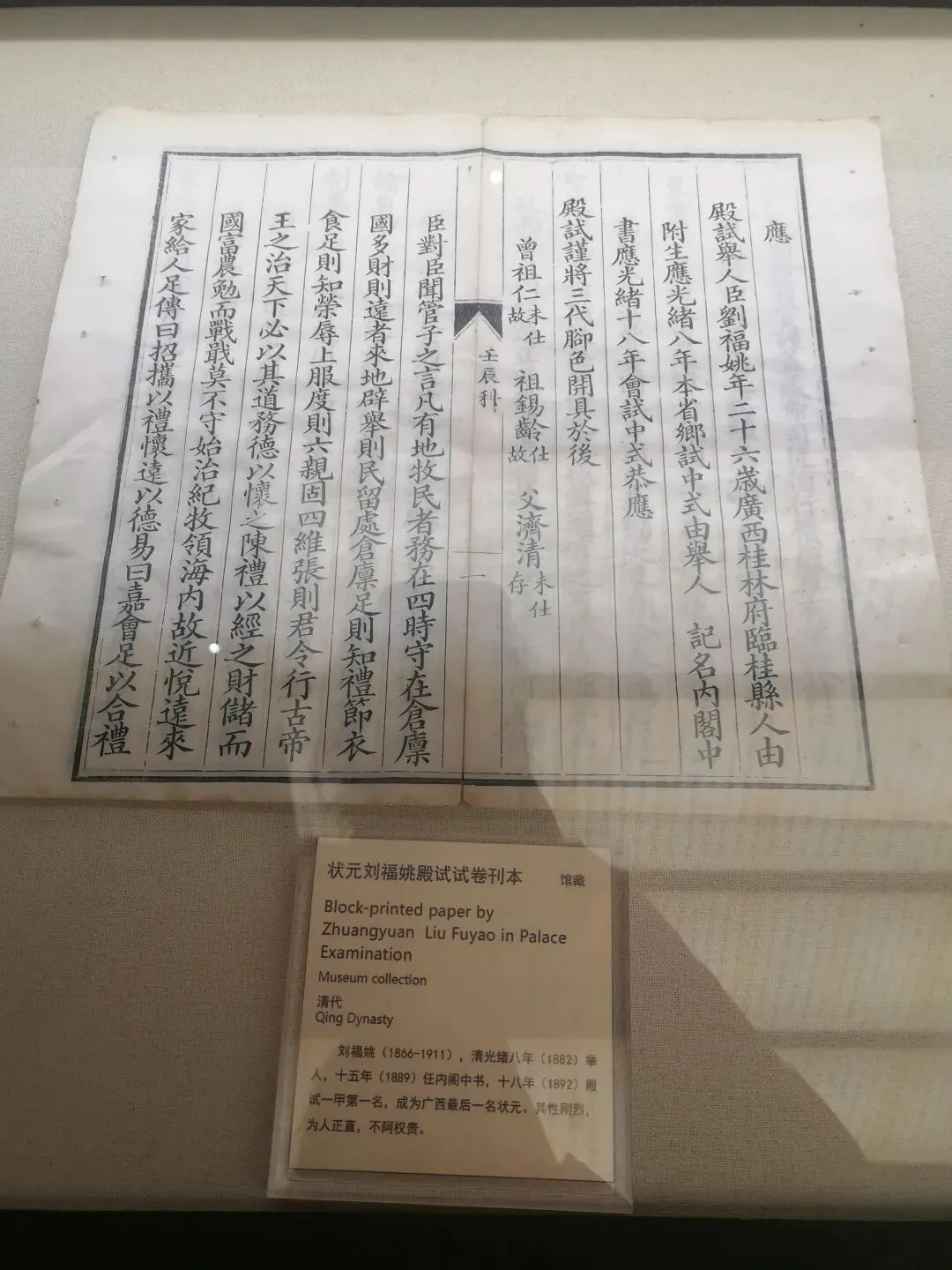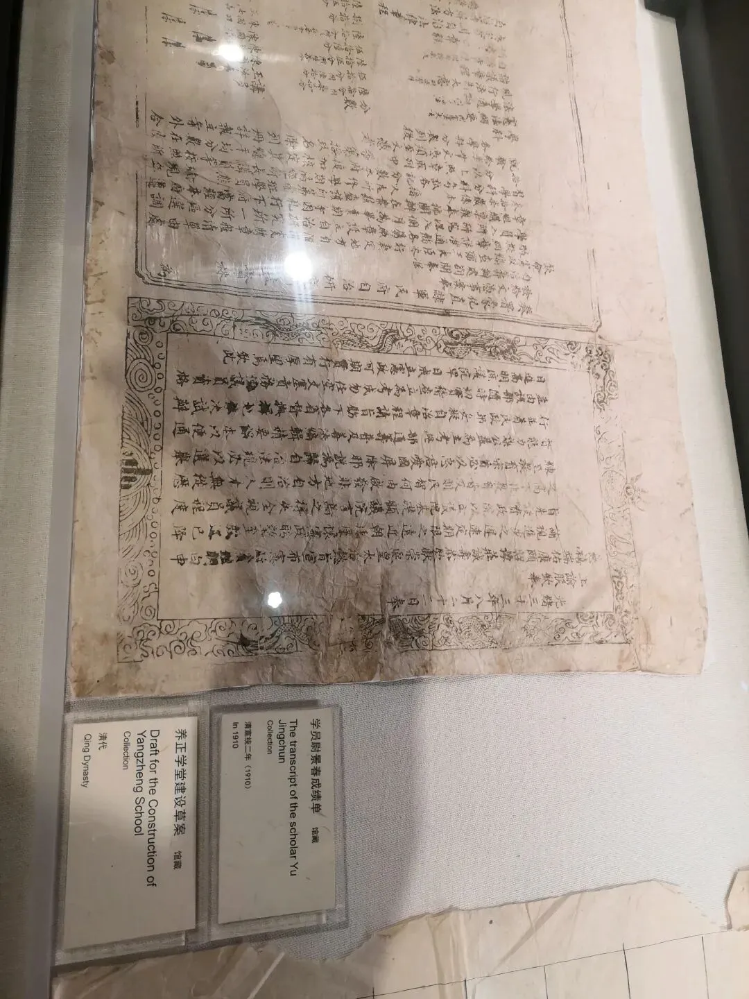 “鱼龙变化”展厅是中国科举博物馆的核心展区,位于负四层。该展厅通过精美的文物和生动的场景,展现了考生通过科举实现身份巨变、宛如“鲤鱼跳龙门”的过程。有著名的明代“鱼化龙”石雕:高约70厘米的青石雕刻,呈龙头鱼身形象,造型古朴生动。顶端有一圆孔,古时家中有新生儿会在此烧“龙头香”,取“望子成龙”之意,兼具科举寓意与民俗趣味;还有清康熙青花鱼龙变化图盘:盘心以青花绘汹涌波涛,其间有龙与大小三鱼翻泳。通过“鱼跃成龙”的画面,象征飞黄腾达、金榜题名,是康熙朝瓷器中的精品。还有一件清代的寿山石雕鱼化龙纹笔筒:寿山石质地温润,正面雕刻鱼化龙纹饰。作为文房用具,置于案头以激励读书人奋发向学,是清代雕刻工艺与科举文化结合的体现。