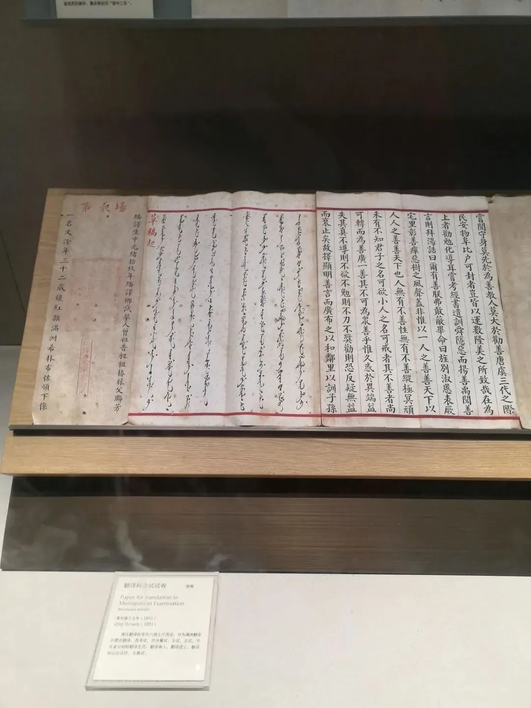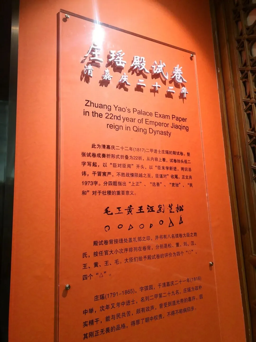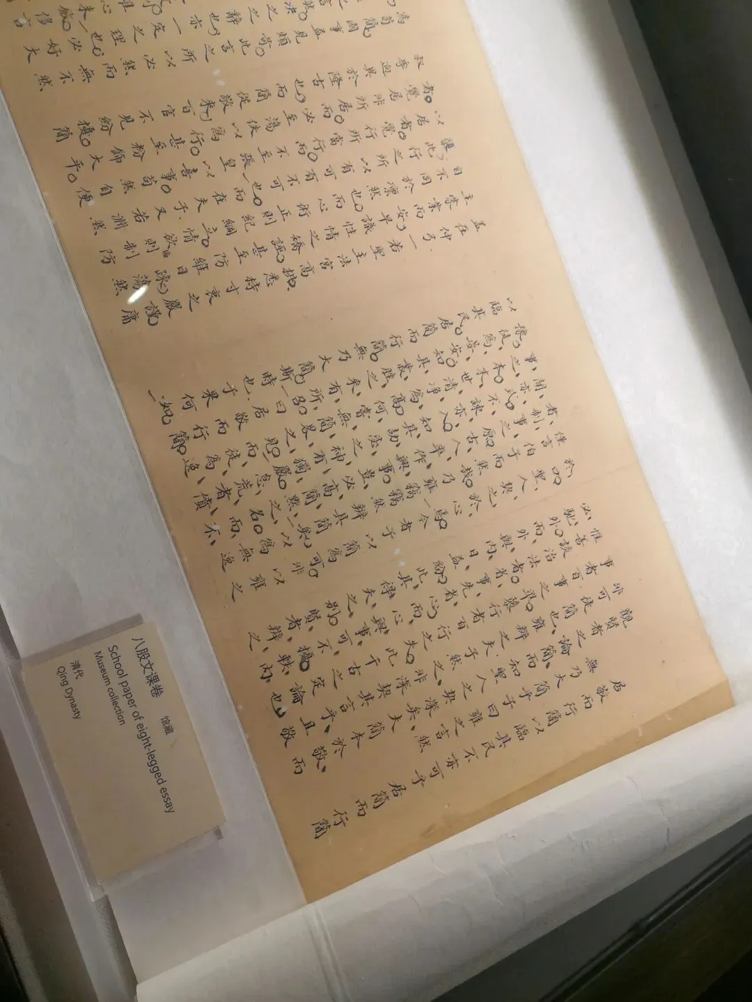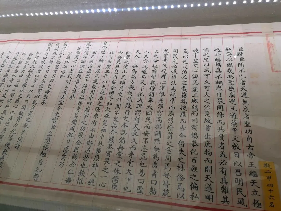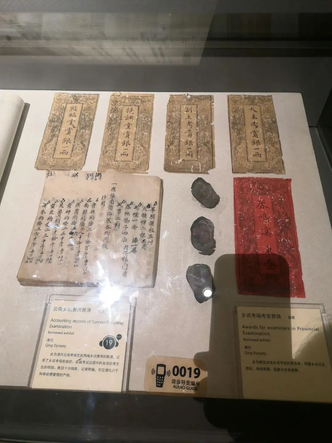 “鱼龙变化”展厅是中国科举博物馆的核心展区,位于负四层。该展厅通过精美的文物和生动的场景,展现了考生通过科举实现身份巨变、宛如“鲤鱼跳龙门”的过程。有著名的明代“鱼化龙”石雕:高约70厘米的青石雕刻,呈龙头鱼身形象,造型古朴生动。顶端有一圆孔,古时家中有新生儿会在此烧“龙头香”,取“望子成龙”之意,兼具科举寓意与民俗趣味;还有清康熙青花鱼龙变化图盘:盘心以青花绘汹涌波涛,其间有龙与大小三鱼翻泳。通过“鱼跃成龙”的画面,象征飞黄腾达、金榜题名,是康熙朝瓷器中的精品。还有一件清代的寿山石雕鱼化龙纹笔筒:寿山石质地温润,正面雕刻鱼化龙纹饰。作为文房用具,置于案头以激励读书人奋发向学,是清代雕刻工艺与科举文化结合的体现。
