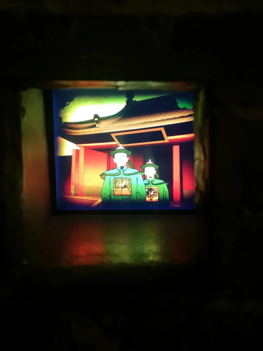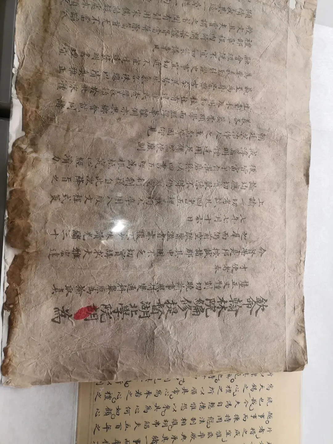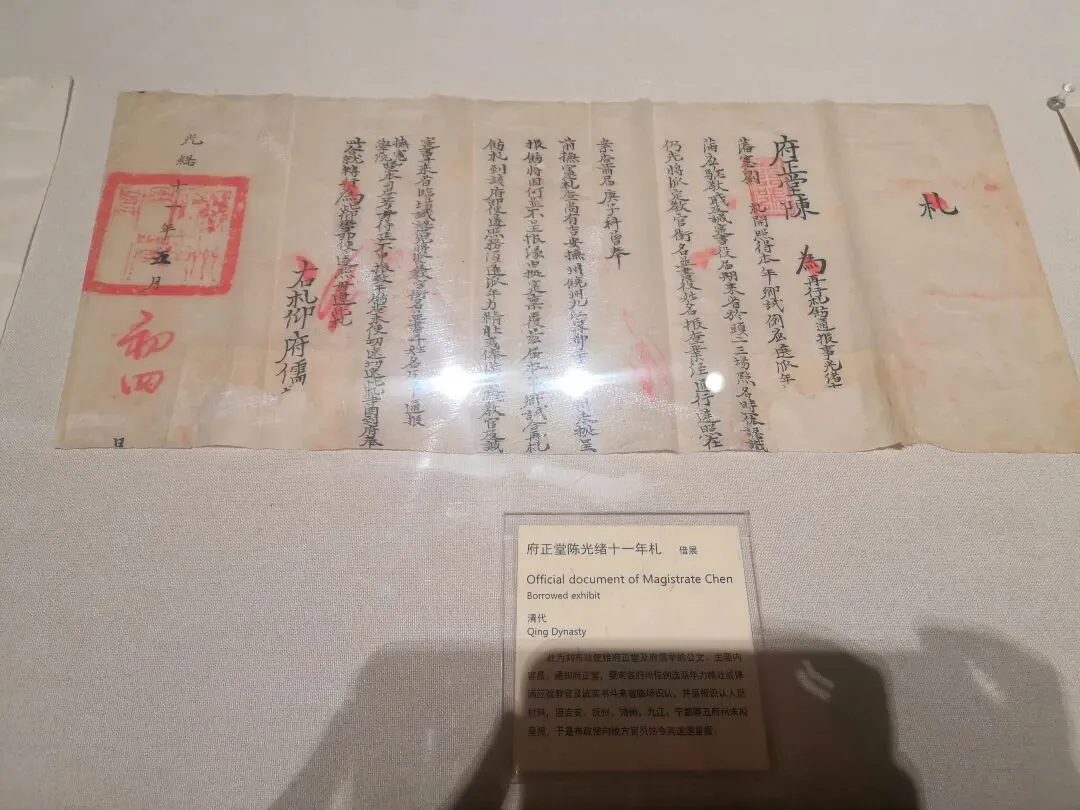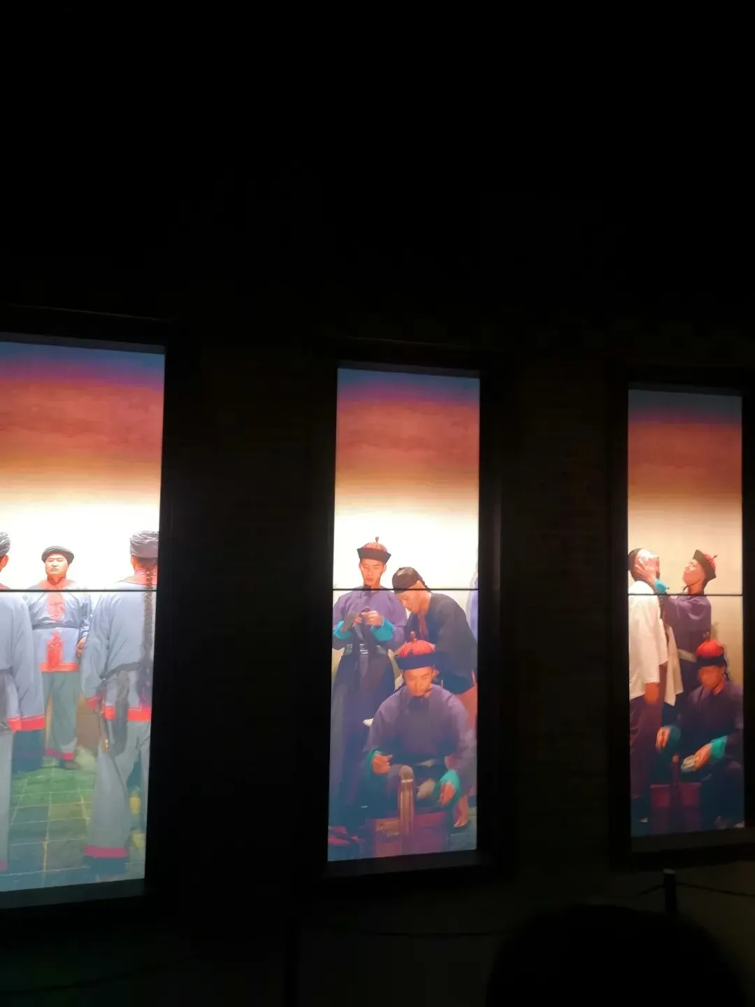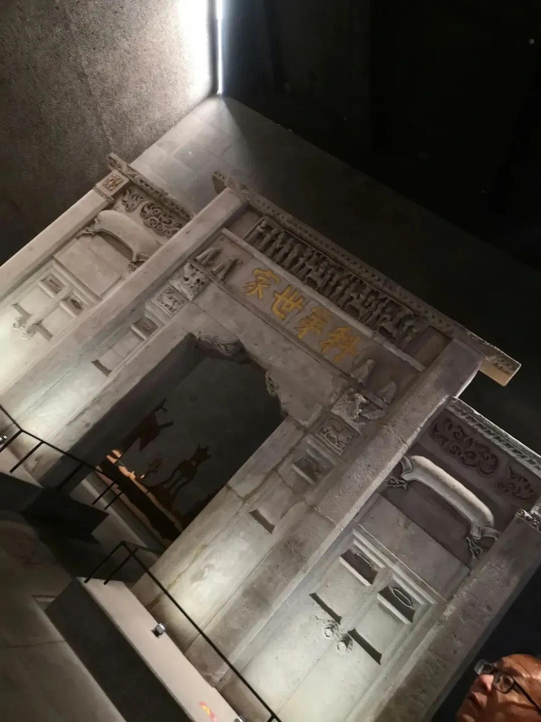 还有一件民国鱼化龙纹绣品桌围,以红斜纹布为底,刺绣波涛中鲤鱼跃动、苍龙腾空,色彩浓烈。用于遮盖供桌,寄托了对生命变迁和学业有成的祈愿。好像我没拍到这几件文物。