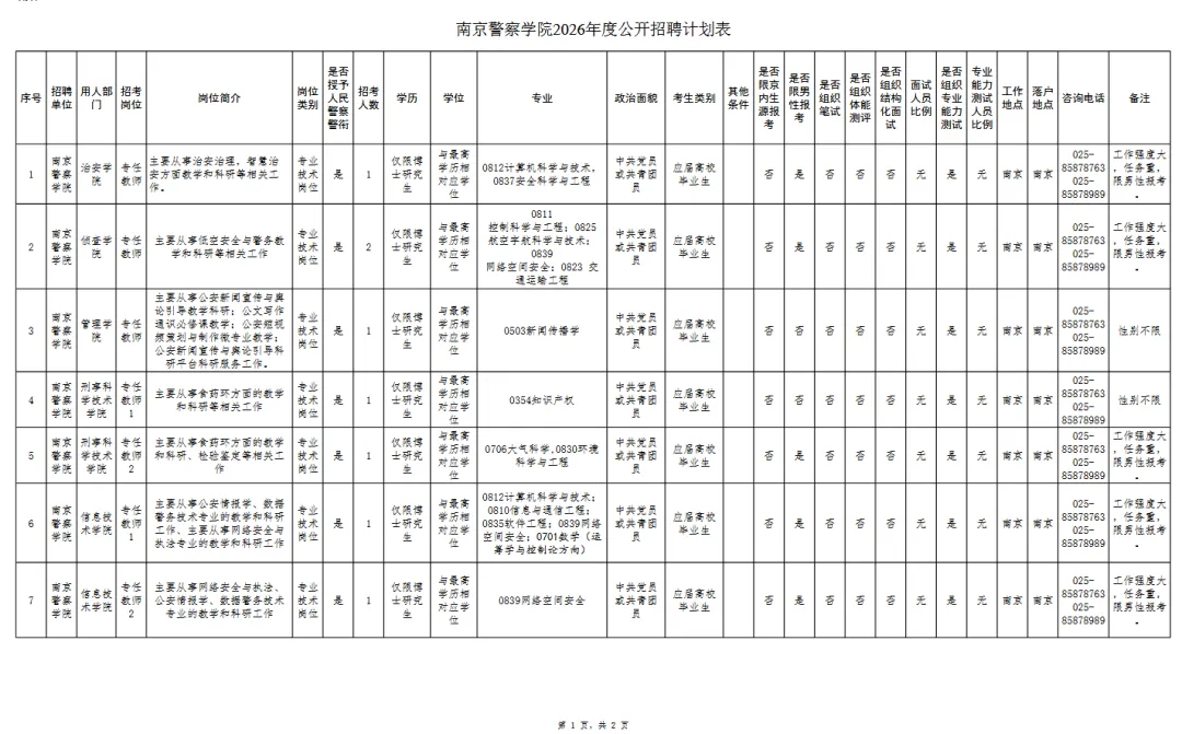 附件1:南京警察学院2026年度公开招聘计划表.pdf