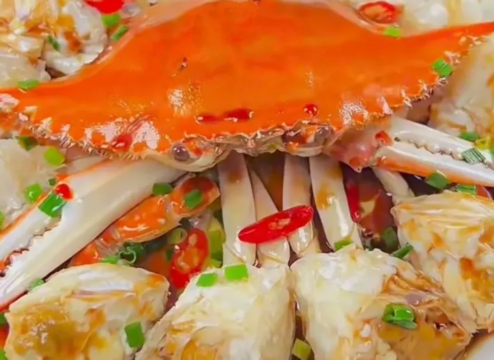 【清蒸梭子蟹】不需要任何复杂的调料,也不用葱姜蒜去腥,直接上锅清蒸。好的食材,往往只需要最朴素的烹饪方式。揭开蟹盖,那股热气带着海洋特有的咸鲜味扑面而来。蟹黄是凝固的脂膏,蟹肉是一丝一丝的甜。蘸一点点镇江香醋,肉质的紧实和醋的酸香在舌尖一碰,鲜味瞬间炸开,你会觉得,之前的等待都值了。