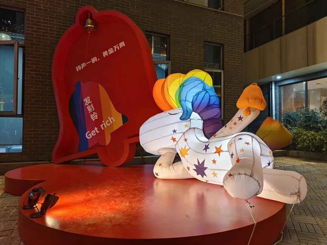 街区不定期有美陈快闪装置上新,吸引游客前来打卡。