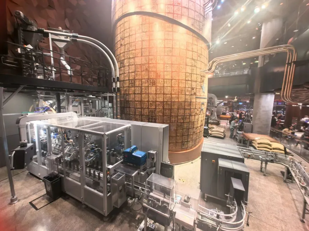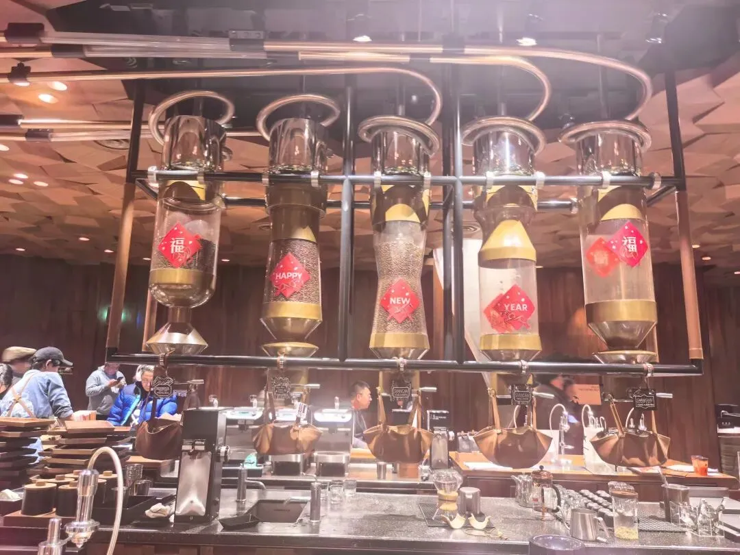 推开厚重的木质门,扑面而来的是浓郁的咖啡豆香气。两层楼高的巨型铜罐矗立中庭,罐身上镌刻着约一千多枚中国印章式图案,一笔一画刻着中国传统经典词句。