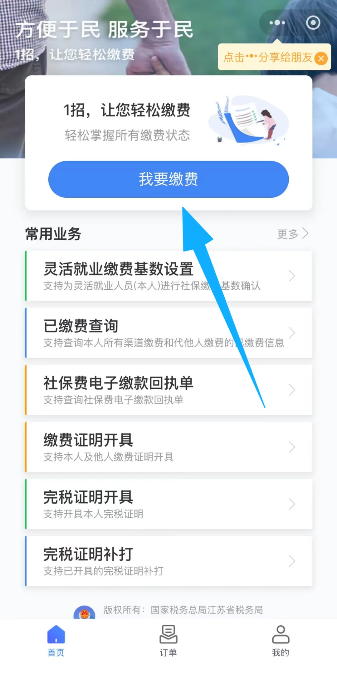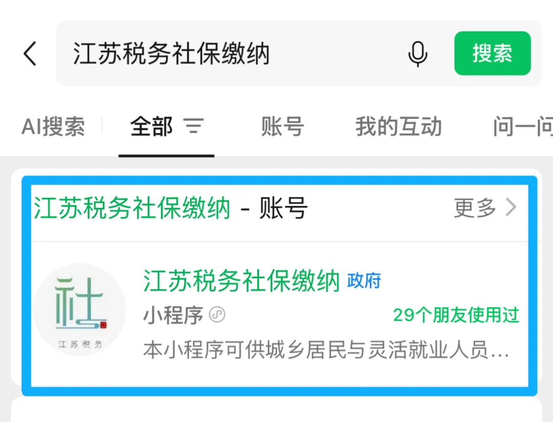 支付宝或微信搜索“江苏税务社保缴纳”,点击【进入】进行选档、缴费操作。
