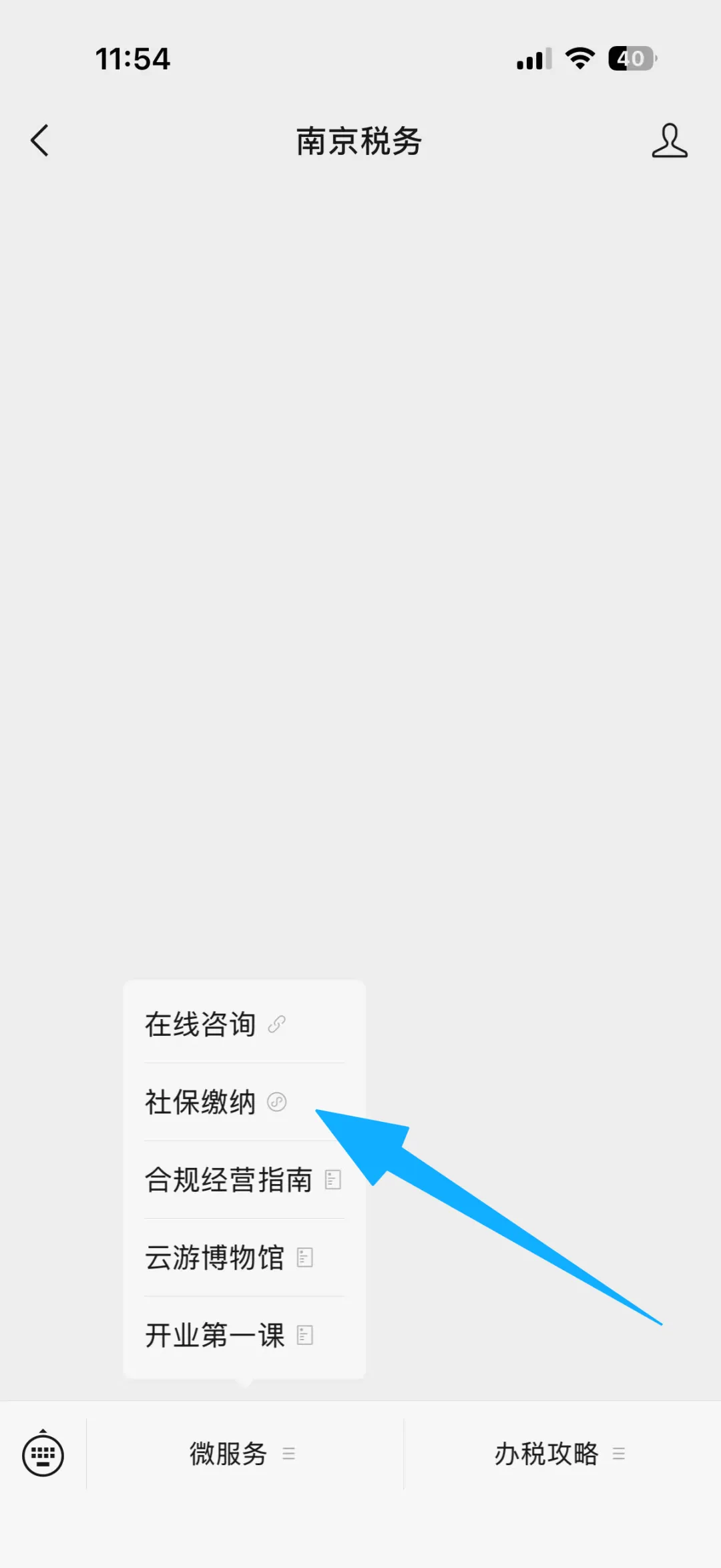 微信搜索并关注“南京税务”微信公众号,点击“微服务-社保缴纳”进行选档、缴费操作。