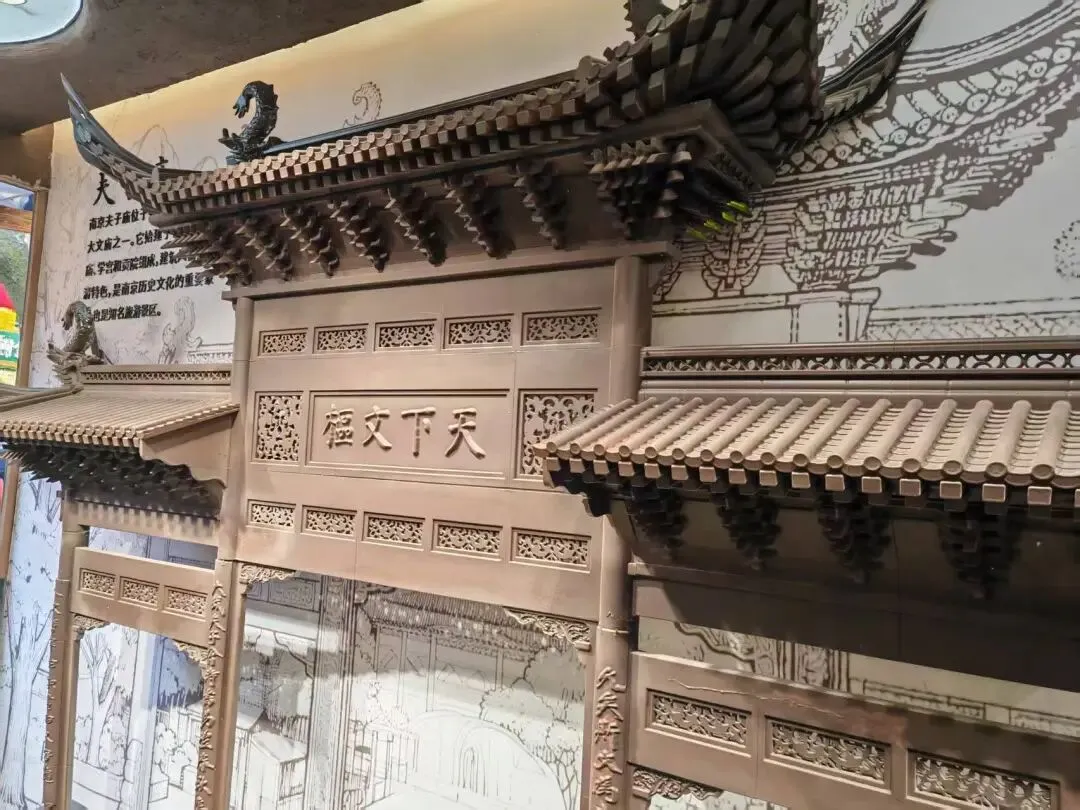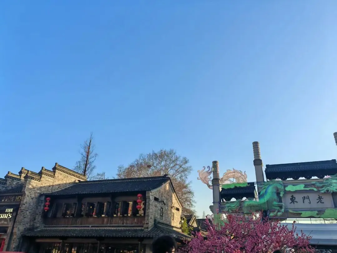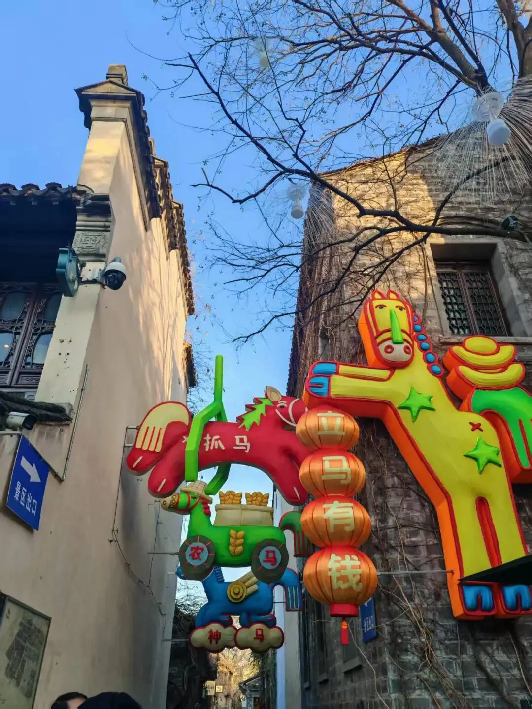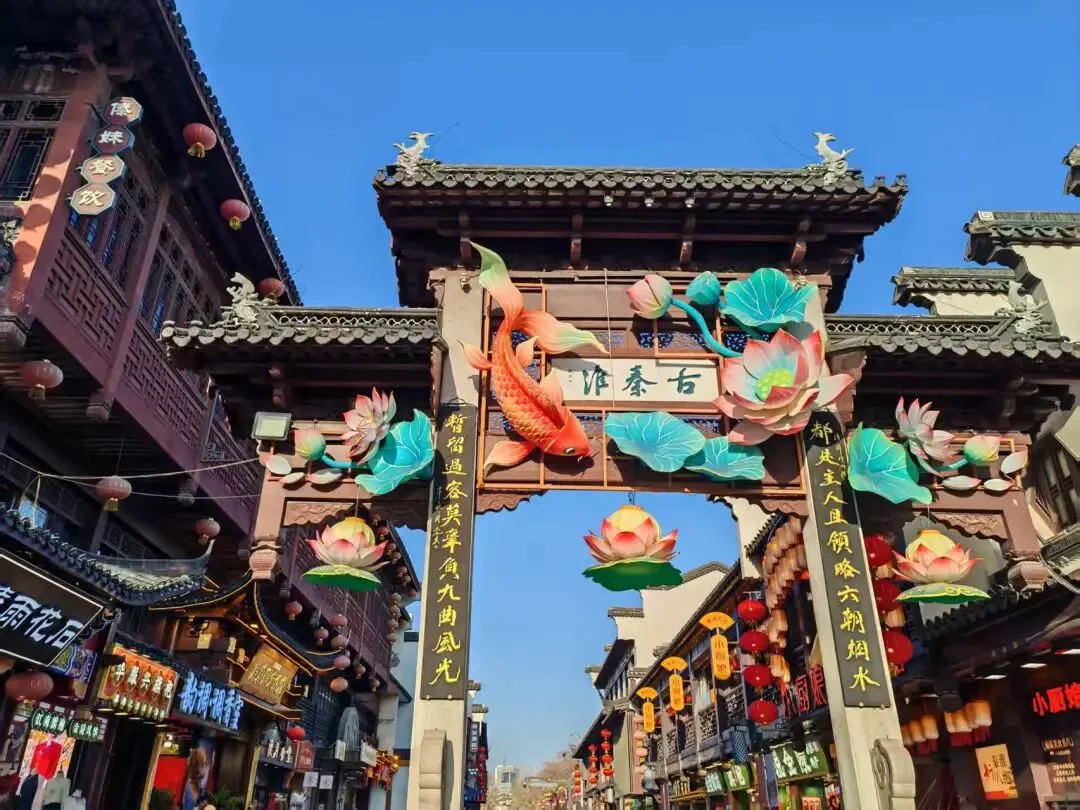坐船游秦淮的人山人海直接劝退了我们一家三口,还是继续游逛吧。顺着路标决定去老门东,然后就遇到了古秦淮的牌坊,这个花灯装饰得倒是别有一番韵味