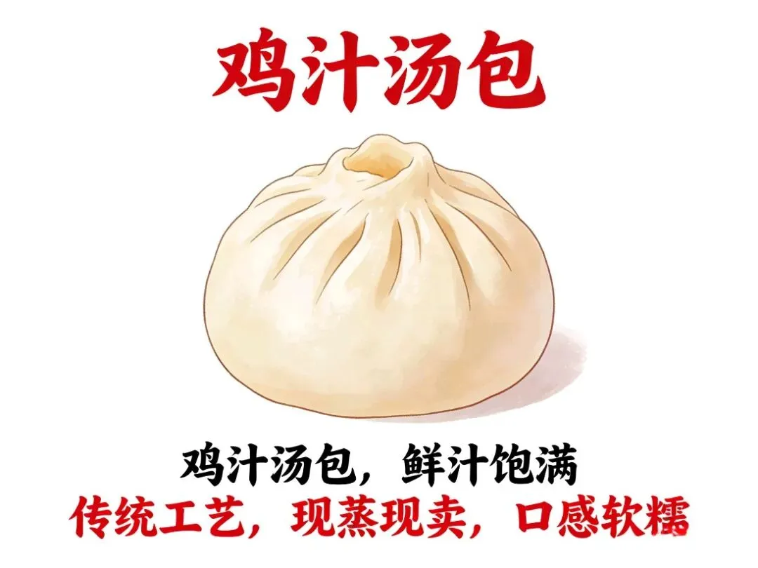 皮薄如纸、褶纹精致,内馅饱满、汤汁滚烫。吃法讲究“先开窗、后喝汤”,鲜醇鸡汁混着肉香,甜鲜适口,是秦淮风味的精致代表。