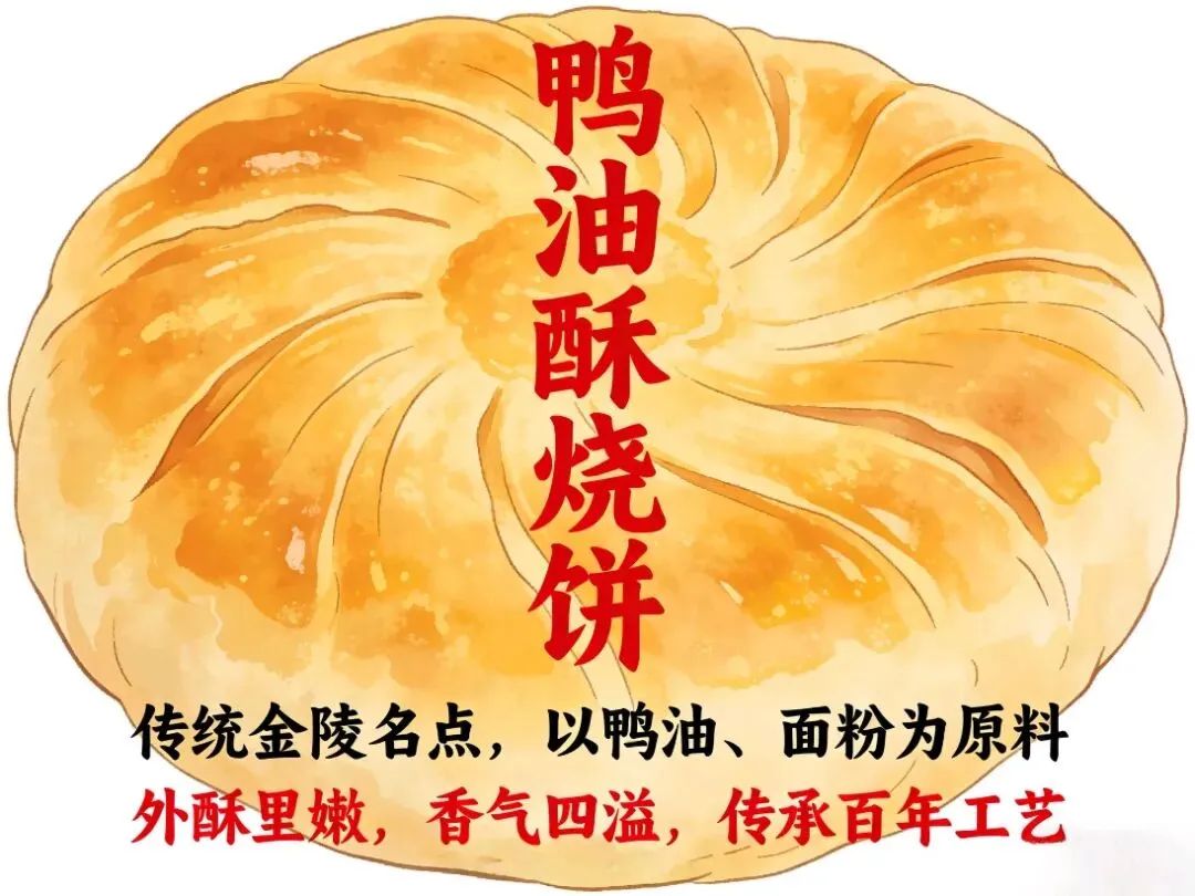 老南京烟火气担当,鸭油和面层层起酥。外皮酥到掉渣,内芯松软,咸香适口,空口吃或夹油条、夹咸菜都香,早餐摊永远的人气王。