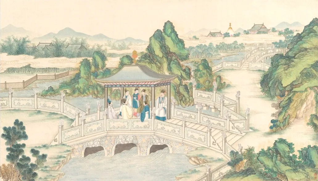 再如38回“藕香榭”有一联:“芙蓉影破归兰桨,菱藕香深泻竹桥”,读此联,仿佛被作者带进了玄武湖、莫愁湖的优美境地,水中满是荷花亭亭玉立的倩影,因为兰桨的轻划,倒影摇碎成一湖花瓣,刚刚采摘的花香藕和菱角,一船浓香随流水穿过竹桥,寥寥14个字,极为精巧地描画出南京“藕香深处”的景致,令人赏心悦目。40回中,有描写探春喜欢的米芾《烟雨图》和“烟霞闲骨格,泉石野山涯”的对联,借此表达探春“素喜阔朗”的性格,实为抒写作者本人寄情山水,渴望烟霞一样悠闲、自由隐士般超脱飘逸的志趣,用典不露痕迹,堪称佳联。