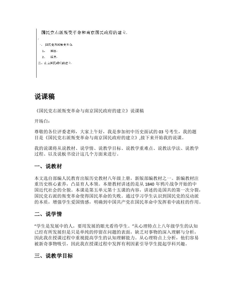 初中历史说课稿《国民党右派叛变革命与南京国民政府的建立》