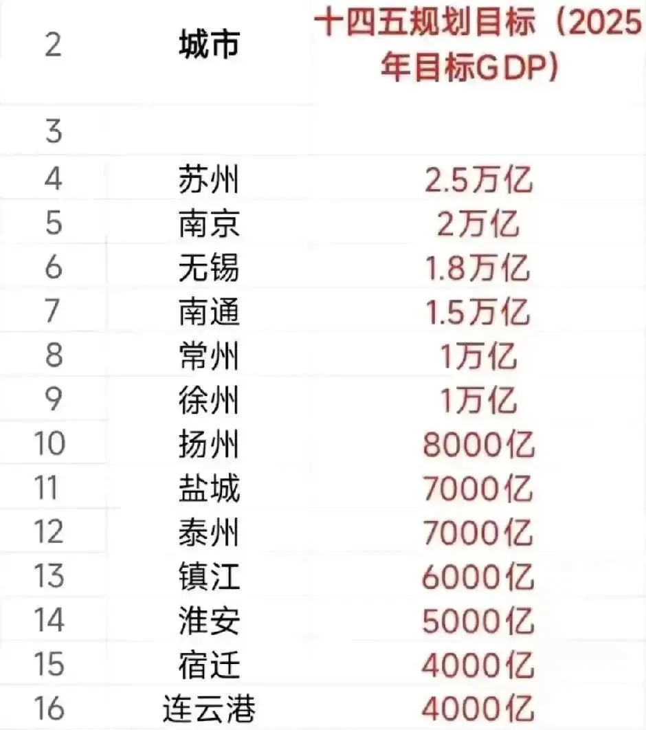 苏州作为全省经济的领头羊,它的十四五目标是2.5万亿,苏州最新的数据,2025年的地区生产总值,已经离这个目标非常的接近。苏州实体经济的根基,电子信息、装备制造、先进材料等产业集群的优势,让苏州经济稳健增长,面对复杂的国际经贸形势,苏州扩大内需市场,持续产业创新,经济大盘稳定,离目标只差一步,经济韧性极强。