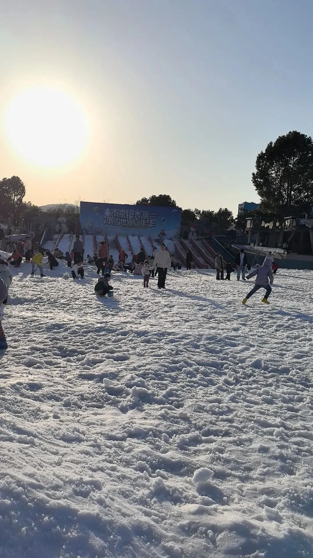 第四站南京版冰雪大世界,这已经是倒数第二站了也是娃最期盼的地方。我们买了鞋套,挖雪工具(最好自己带,哈哈哈),娃进入园区边走边摔跤,摔跤时兴奋地喊着:妈妈,看我滑雪了。我们找了处空地开始铲雪,捏雪球,绕着冰雪场转了一大圈,娃觉得雪的触感太过冰冷,尽兴了就离开了。