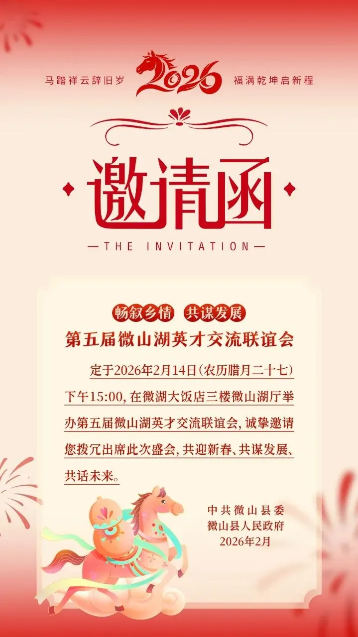 据悉,微山湖英才交流联谊会是微山县重点打造的人才联络平台,每年农历腊月二十八定期举办,旨在邀请返乡在外人才吃团圆饭、汇报家乡发展情况、推介创业政策和产业项目。联谊会已成为在外游子了解家乡变化、感受家乡温暖、投身家乡建设的重要桥梁。