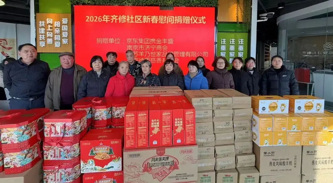 马踏春归,万象更新。在2026年新春佳节即将来临之时,南京市济宁商会在业务主管部门的指导下,与南京德雨慈善基金会、京东集团、金丰盛、羊乃世家、、南京惠济慈善基金会等多家爱心单位携手,联合社会各界公益力量,共同开展“2026新春慰问公益行”系列走访慰问活动。一份份满载温暖的物资送到了南京市雨花台区、江宁区、六合区的困难群众和退役老兵手中,为他们送去了社会各界的深切关怀与诚挚祝福。本次慰问活动覆盖范围广泛,捐赠物资品类丰富且贴近生活,包含了亚麻籽油、纯牛奶、燕麦风味酸羊奶、大米、小米、徐福记礼盒、华夫饼和春联礼盒等。活动旨在营造节日的温馨氛围,满足困难群众的日常所需。