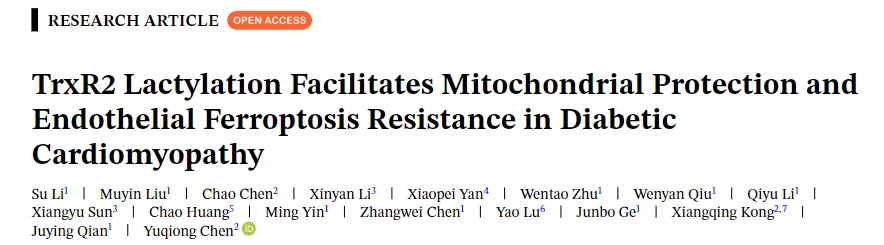 2026年2月17日,南京医科大学陈宇琼教授团队在Advanced Science杂志上发表了题为“TrxR2 Lactylation Facilitates Mitochondrial Protection and Endothelial Ferroptosis Resistance in Diabetic Cardiomyopathy”的研究论文。