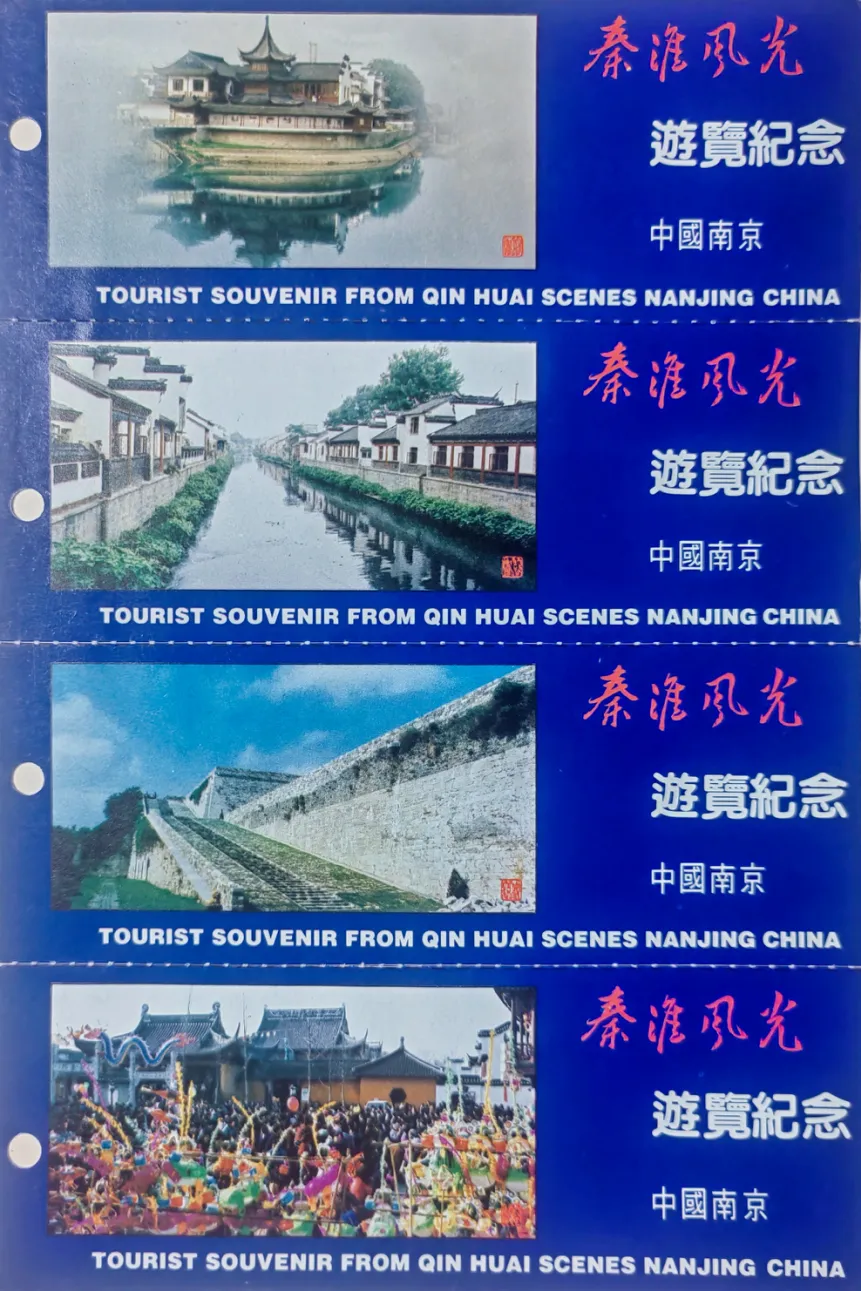 今起,向广大藏友们展示自己收藏的南京门票,基本以早中期使用的为主,自认为是比较好的,还请门票大佬们看过后不要笑话,哈哈哈。本篇请大家欣赏南京秦淮风光联票。这套联票是南京夫子庙游船船票,地址位于夫子庙大成殿前、天下文枢牌坊下面的夫子庙码头(泮池码头)。
