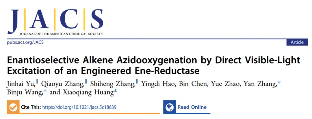 一、中文标题通过工程化烯还原酶的可见光直接激发实现烯烃的对映选择性叠氮氧官能化(Enantioselective Alkene Azidooxygenation by Direct Visible-Light Excitation of an Engineered Ene-Reductase)