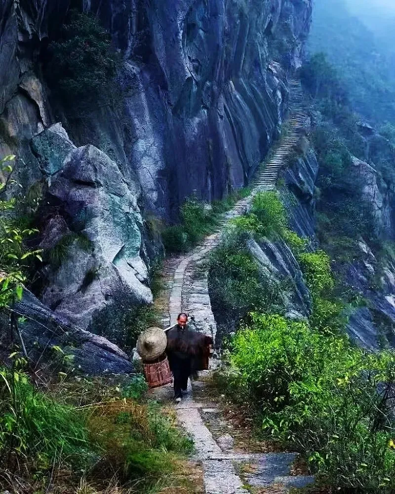 明代兵部尚书胡宗宪、红顶商人胡雪岩、一代文豪胡适、著名徽商胡沇源等许多名人志士就是经这走出大山,成名天下。一路沿着崇山峻岭,古道盘旋,这条路很美,青山绿水,云雾萦绕,自然风光绝佳。无论是春花,还是秋叶,都在鸟鸣溪语风声中尽情铺陈一种美丽、一种活力,行走其间,一路都令人赏心悦目。