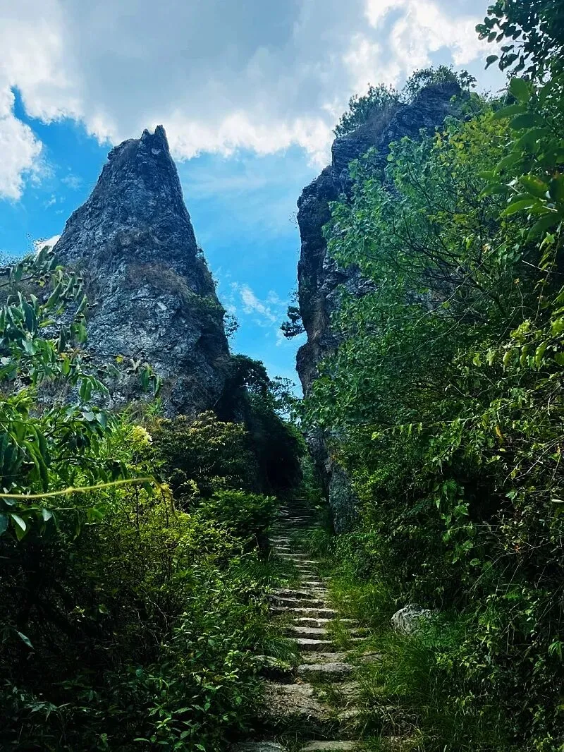 徽杭古道是古时徽商和浙商互通贸易的重要通道,西起安徽省绩溪县伏岭镇的鱼川,东至浙江省临安市马啸乡的浙基田,其中保存最完整的是绩溪县境内盘山小道长度大约16公里,沿途可见峡谷山中的溪水、瀑布。既有险峻的山体,又有柔软的小草原,途中还有鲤鱼跳龙门,挡风岩等自然古朴景观。