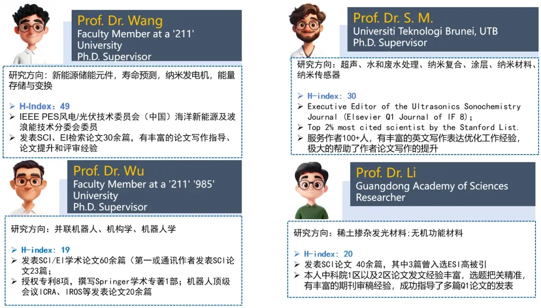 我们拥有3000+期刊资源,帮助大家精准匹配。同时,我们选择了来自国内外名校教授/副教授/助理教授/博士后/博士组成专家团队。他们多为国际知名期刊审稿人或编委,有非常丰富的论文发表经验和审稿经验。助力大家顺利发表。