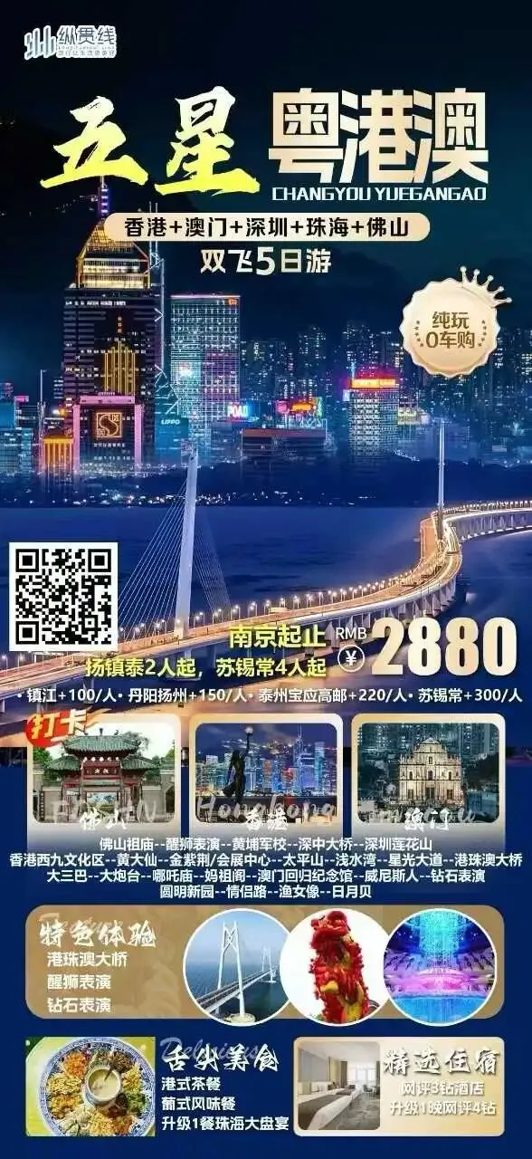 五星粤港澳双飞5日游